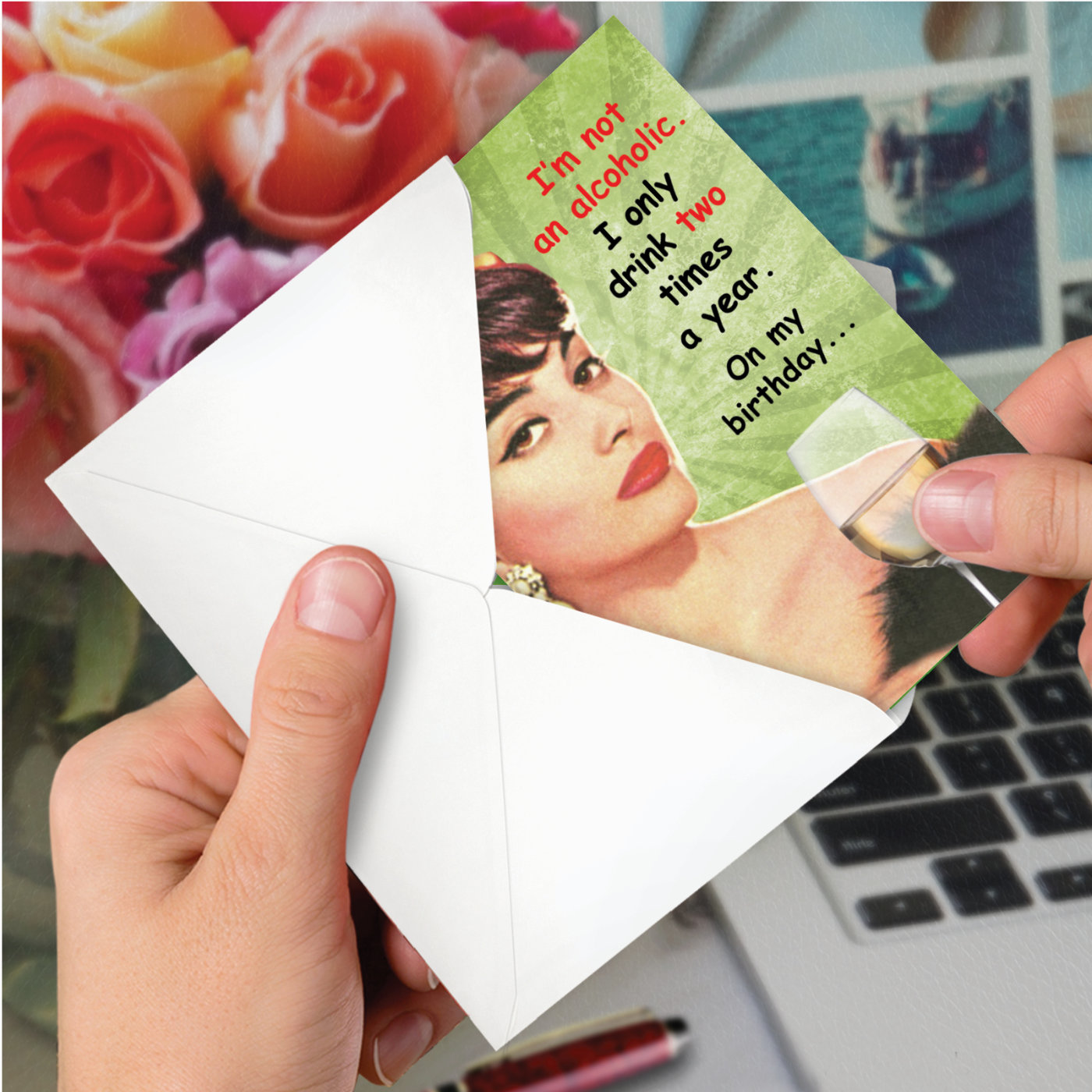 Drink 2 Times A Year - Humorous Birthday Card, Wholesale