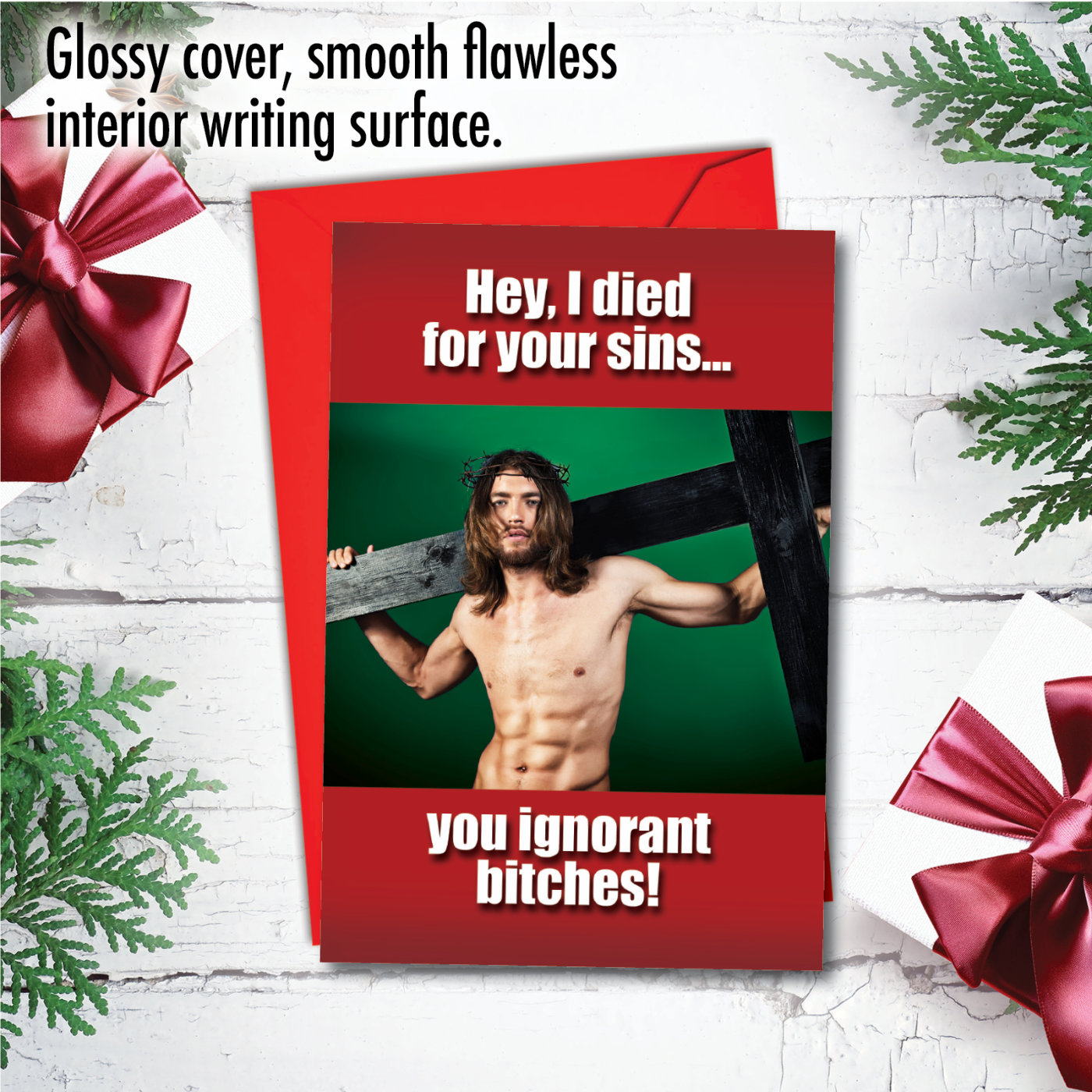 Died For Your Sins - Hilarious Christmas Card, Wholesale