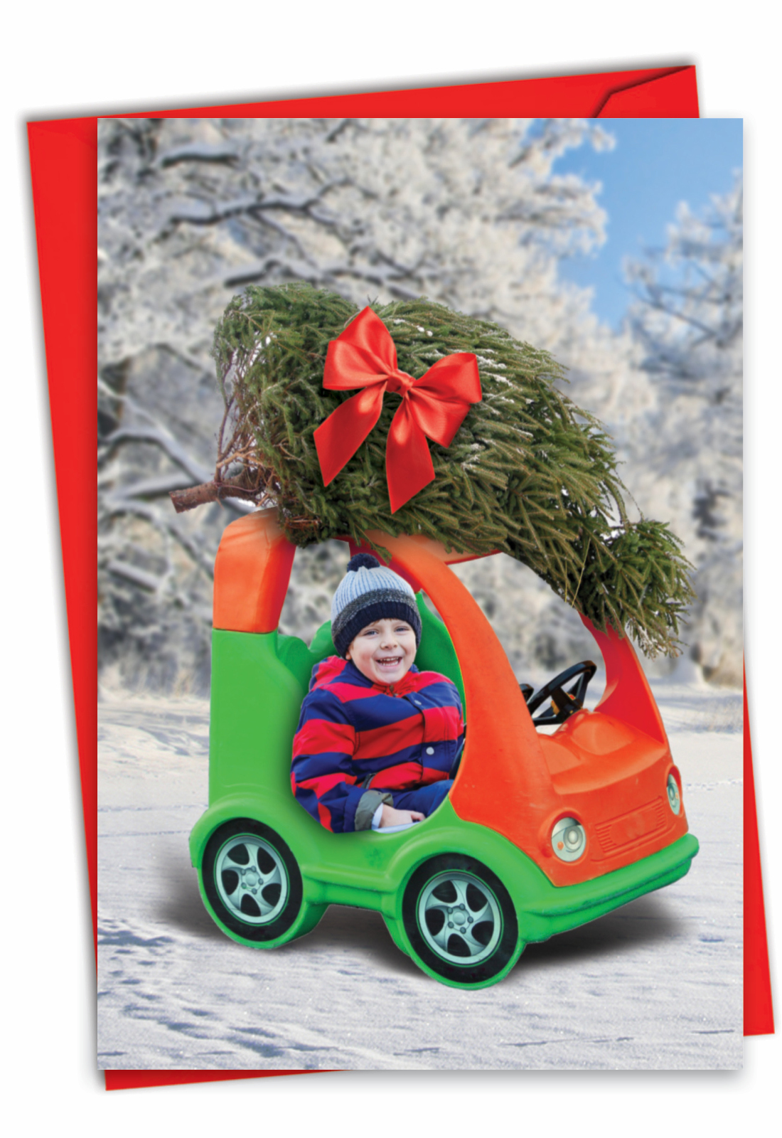 Toy Car Tree - Funny Blank Christmas Card, Wholesale