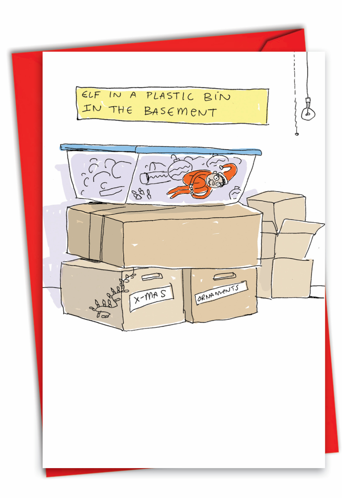 Elf in the Basement - Humorous Christmas Card, Wholesale