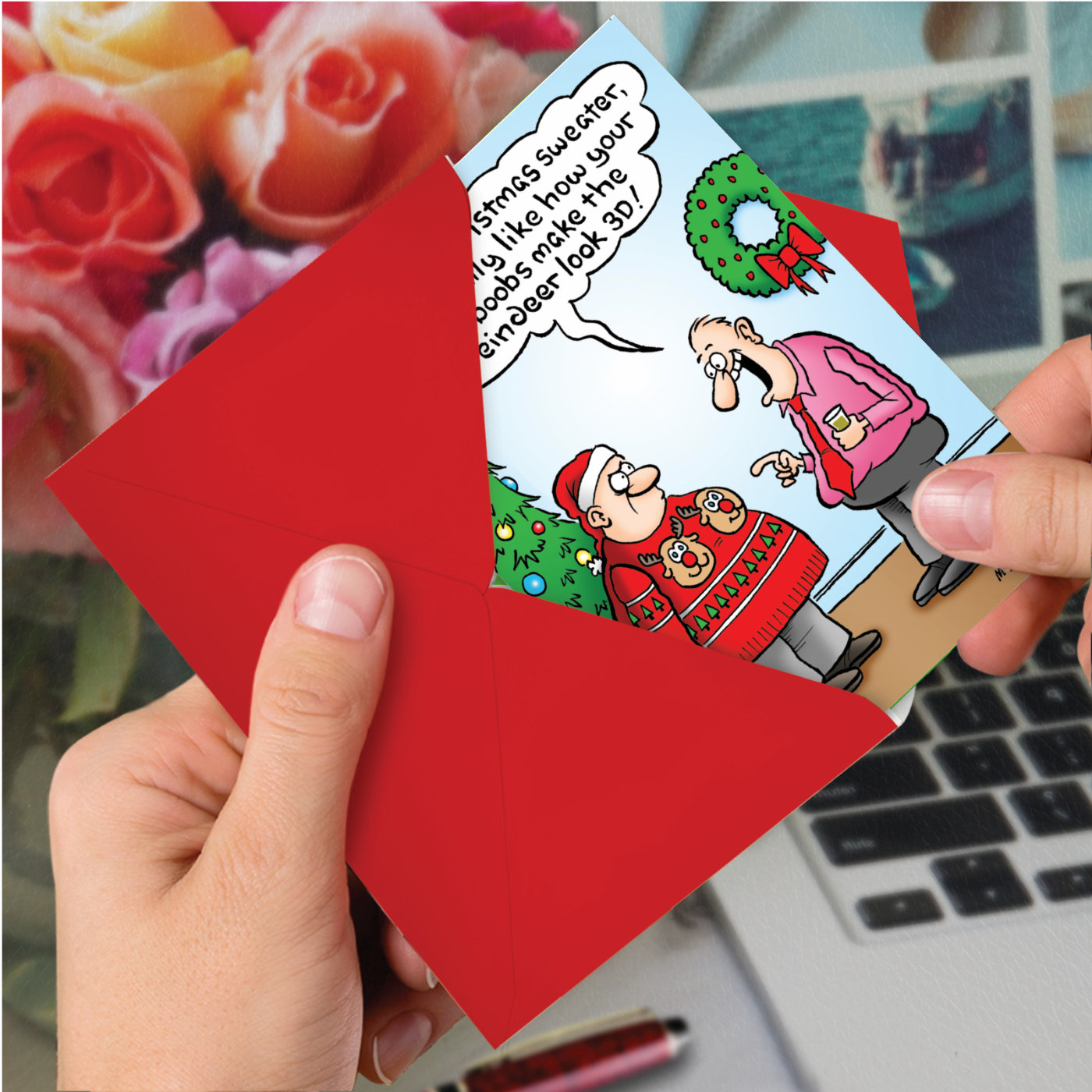 Man Boobs 3D Reindeer - Funny Christmas Card, Wholesale
