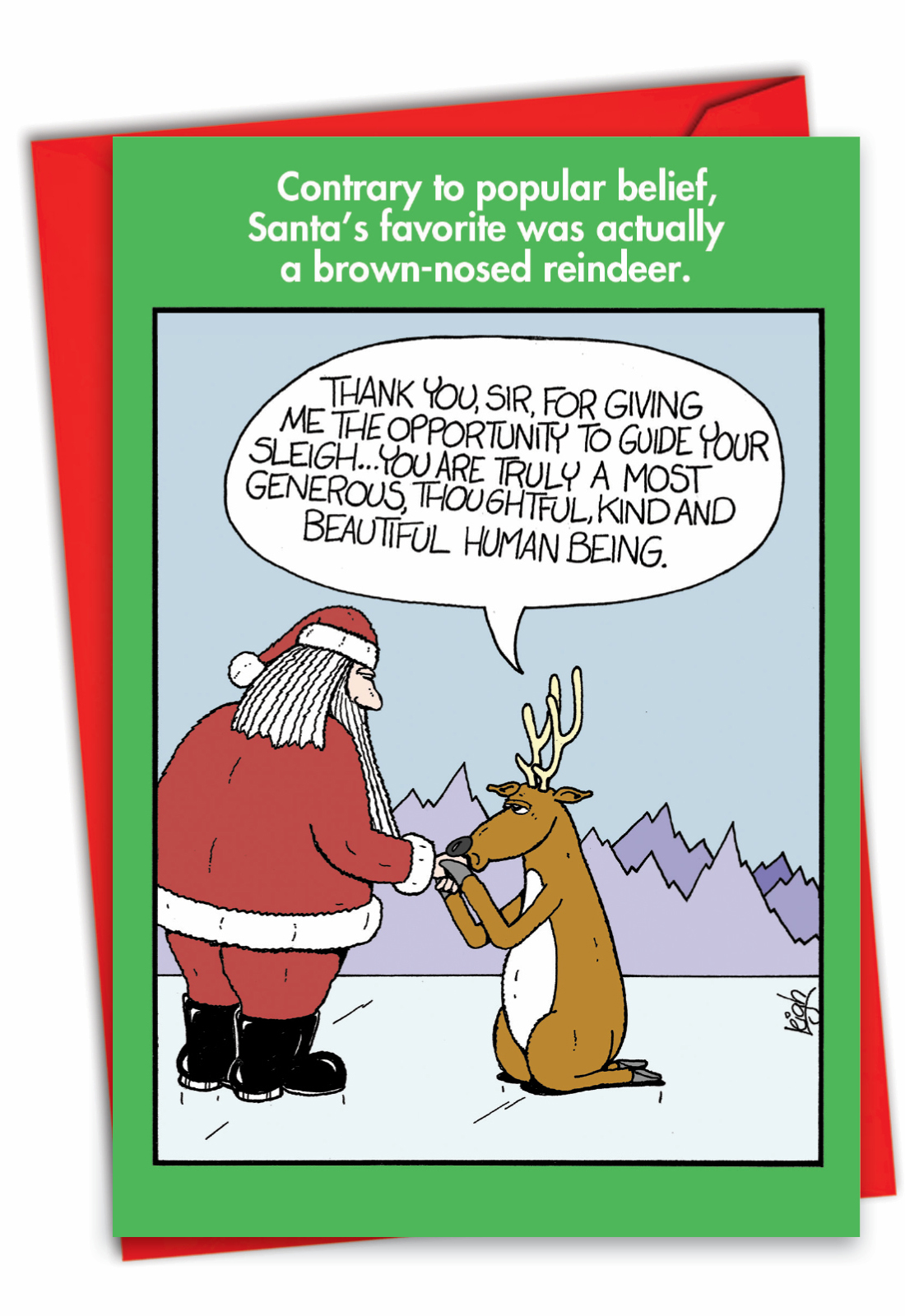 Brown-Nosed Reindeer - Funny Christmas Card, Wholesale