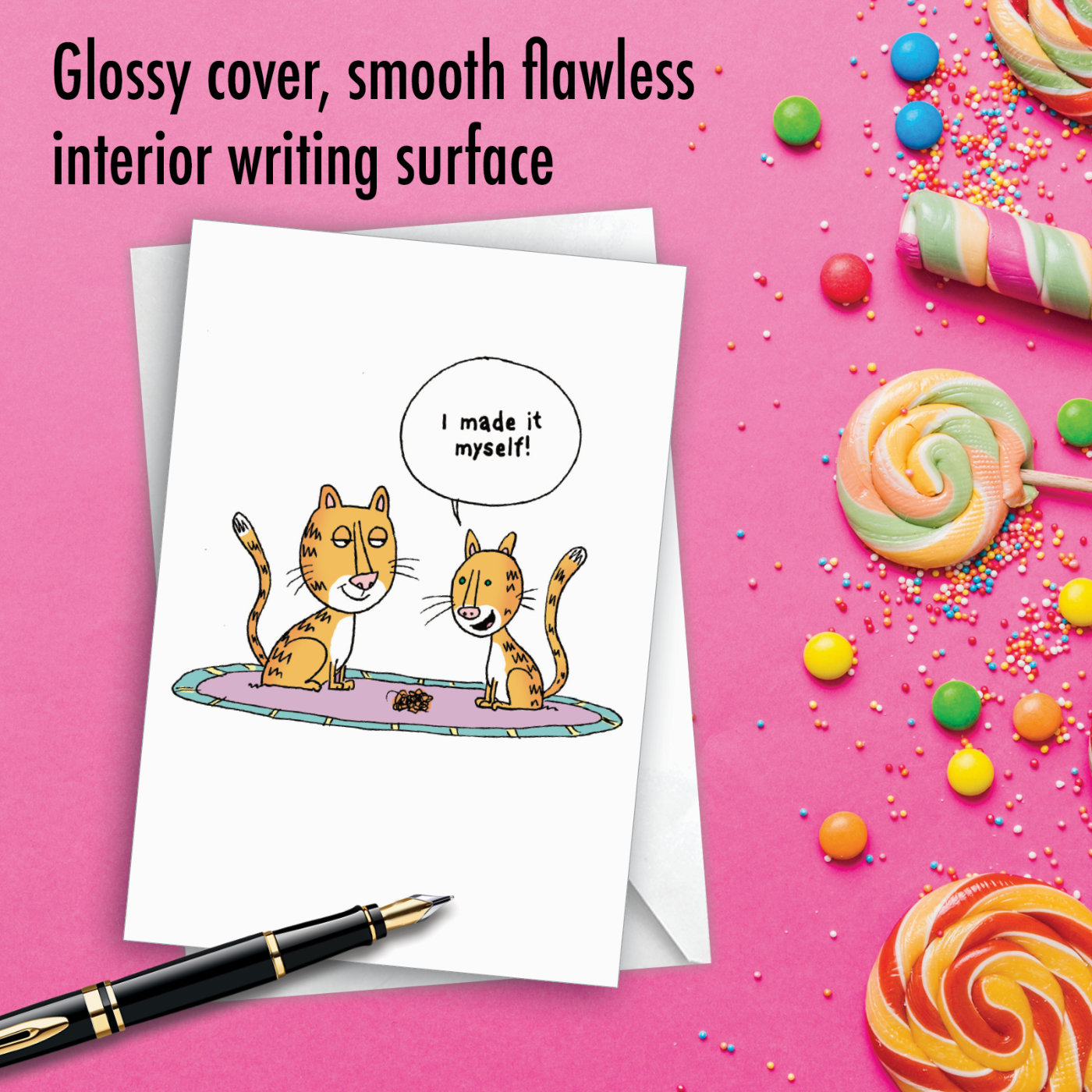 You didn't make this cat birthday card yourself, but you can sign it like you did!