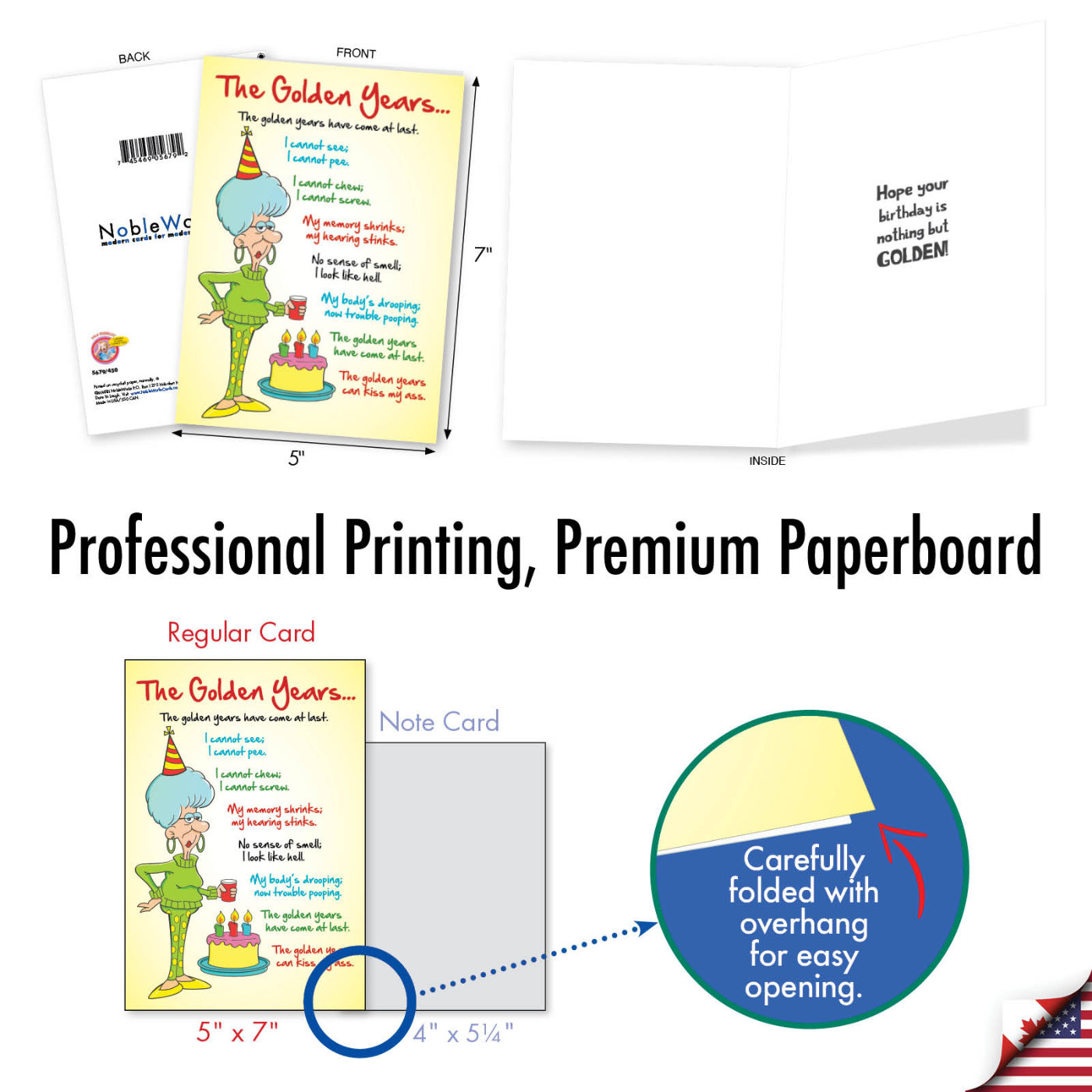 Your friends will have a great time reading this hilarious greeting card about the golden years from NobleWorks Cards.
