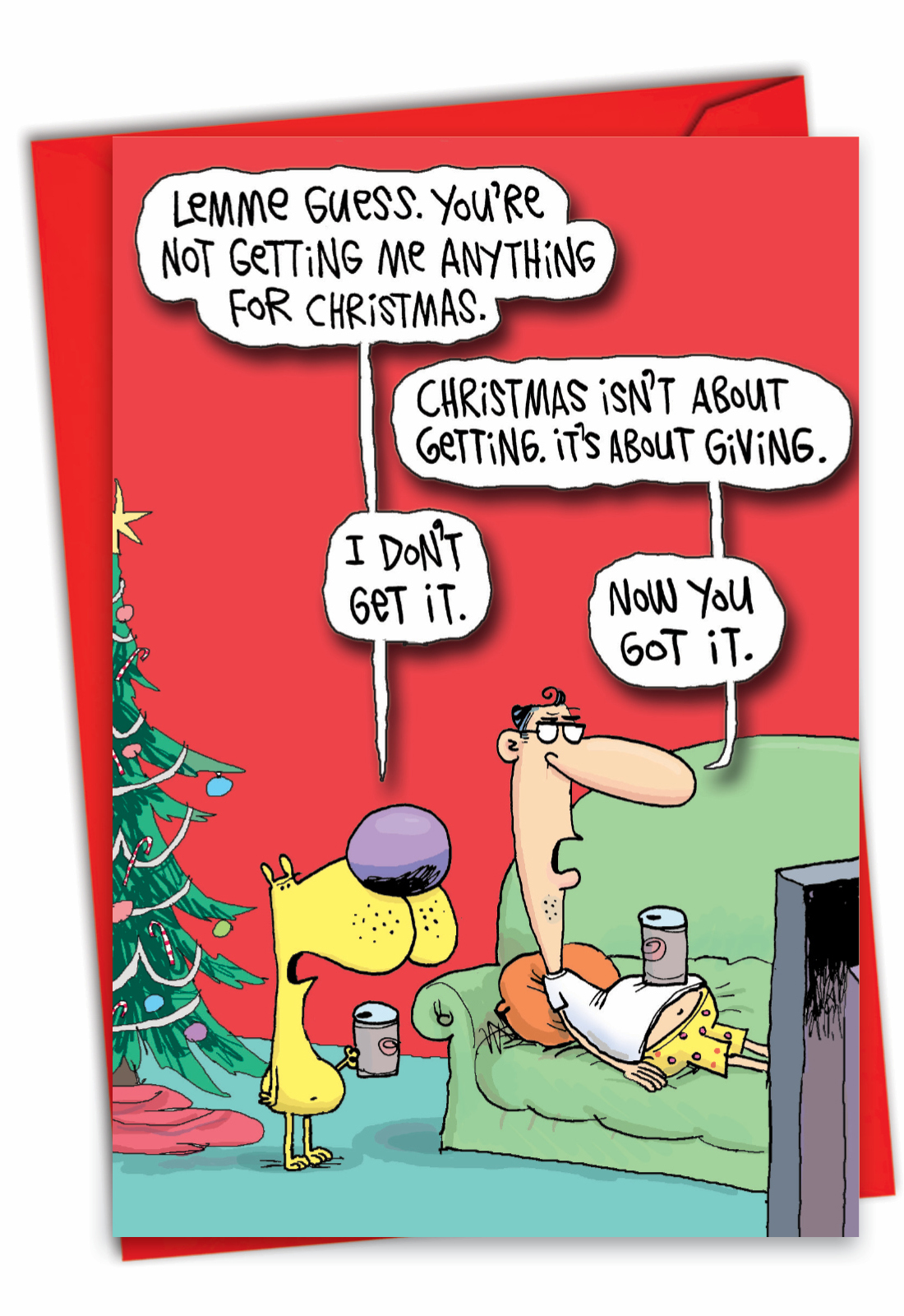 Dog: Lemme Guess. Youőre Not Getting Me Anything For Christmas. Man: Christmas Isnőt About Getting. Itős About Giving. Dog: I Donőt Get It, Man: Now You Do.