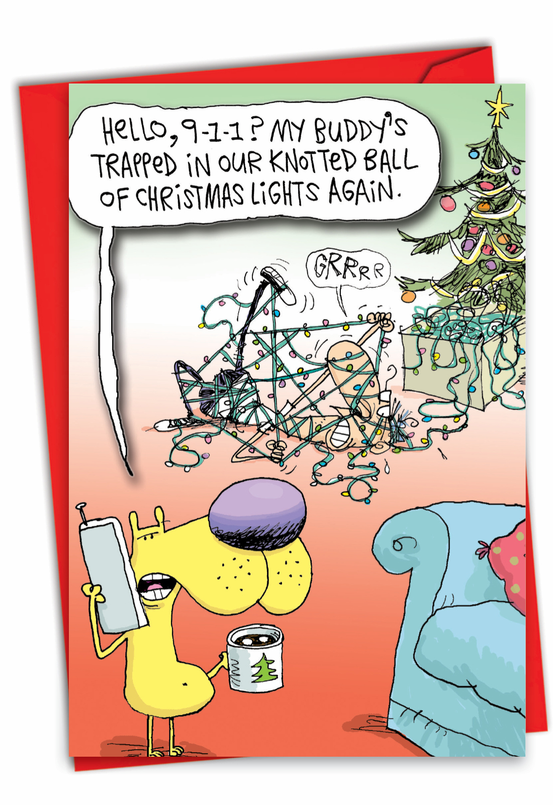 Tangled Lights - Humorous Christmas Card, Wholesale