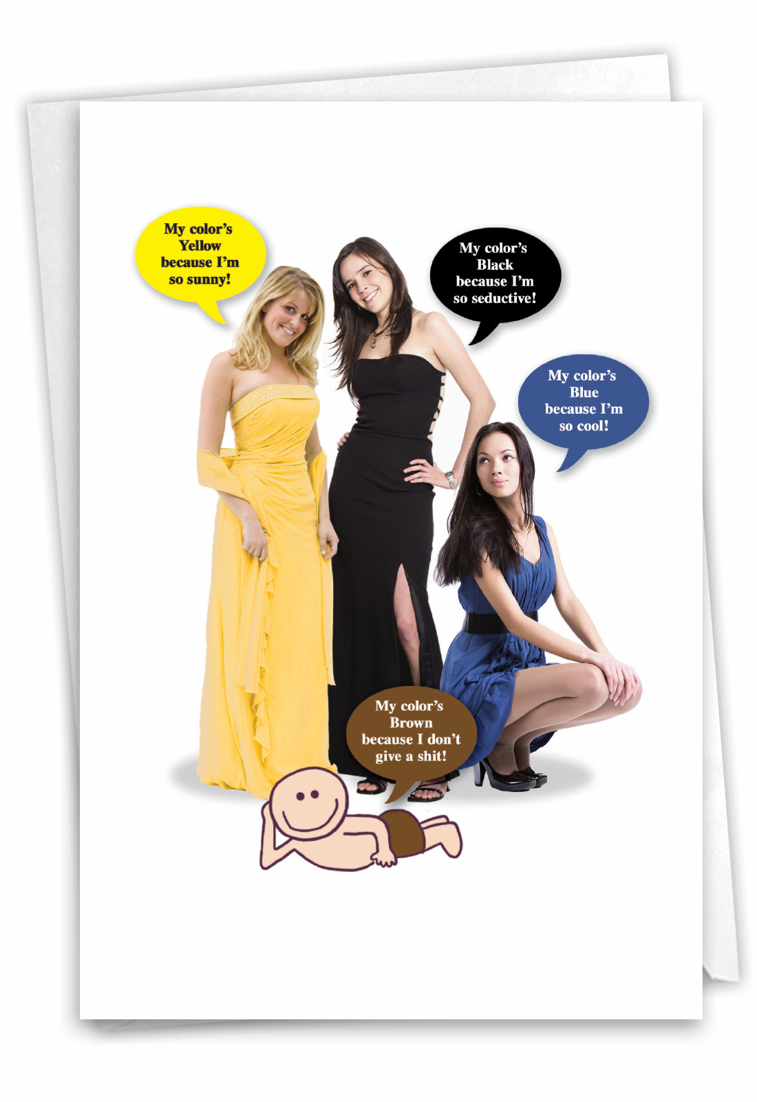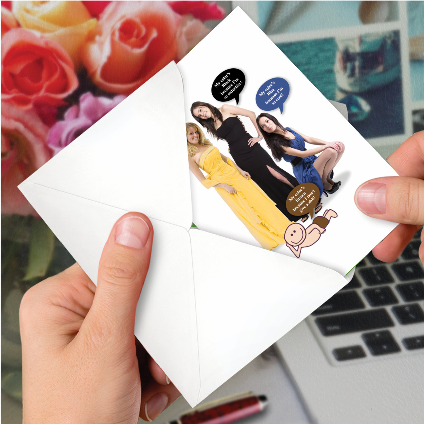 "My Color's Yellow Because I'm So Sunny!", "My Color's Black Because I'm So Seductive!", "My Color's Lilac Because I'm So Cool!", "My Color's Brown Because I Don't Give A Shit!