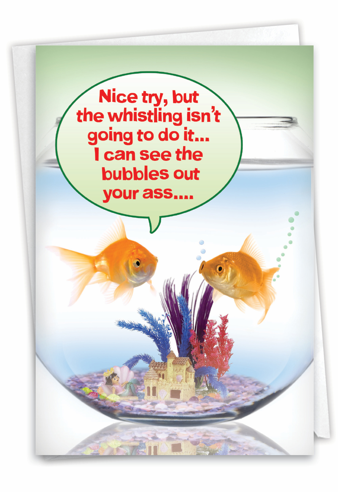 Fish Bowl Whistling - Hilarious Blank Card, Wholesale