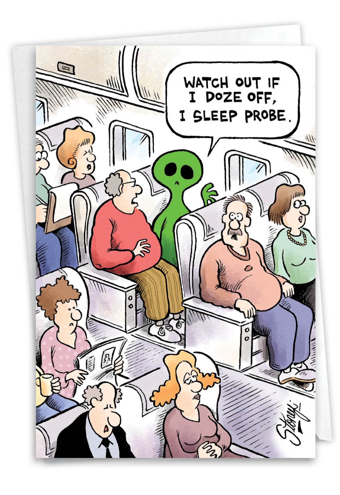 Alien on Plane - Humorous Birthday Card, Wholesale
