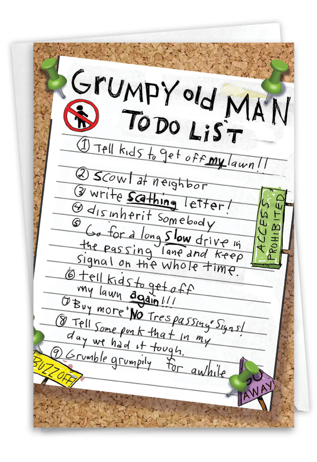 Grumpy Old Man List - Humorous Birthday Card, Wholesale