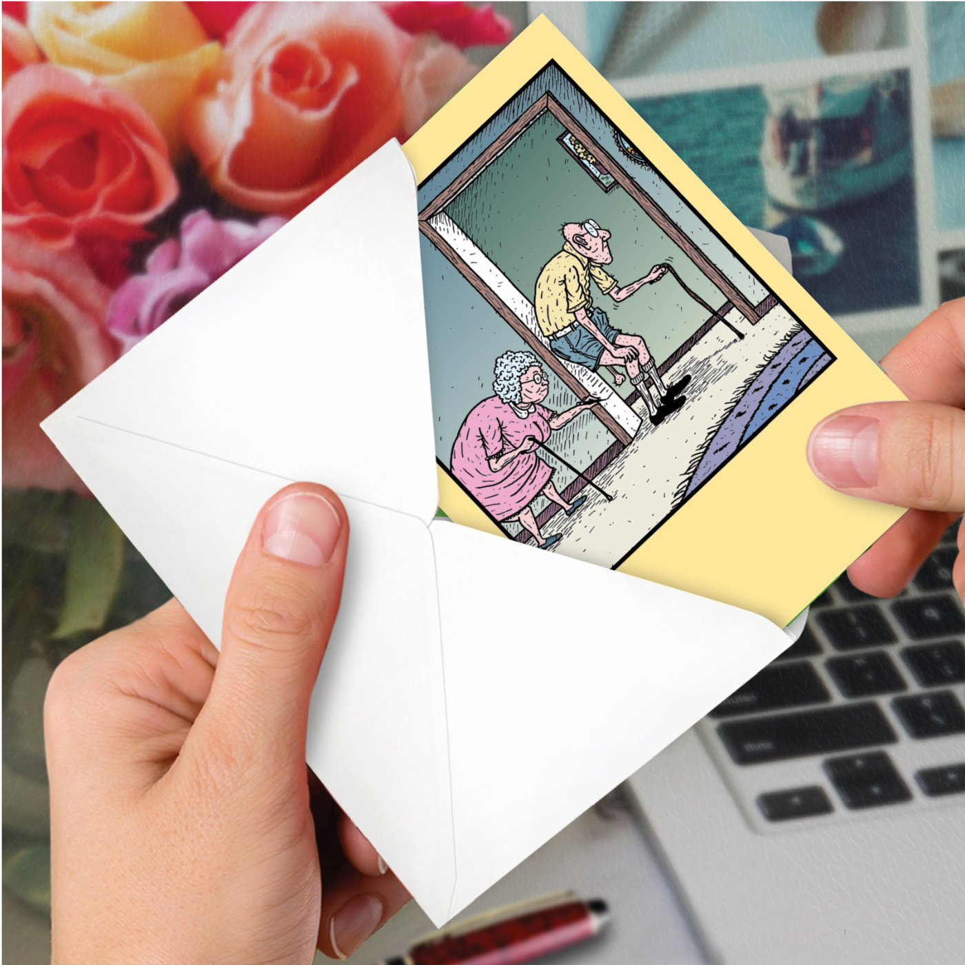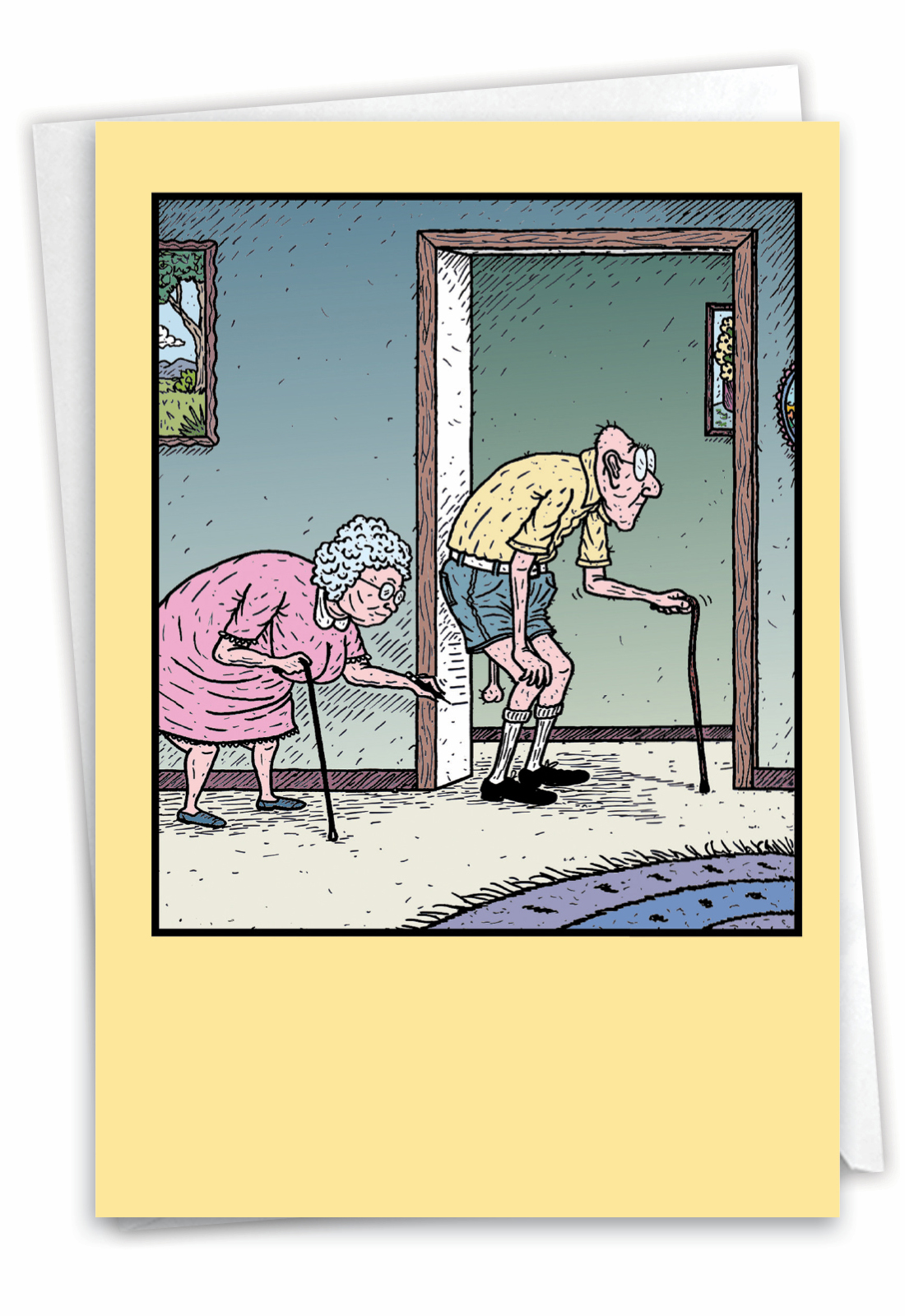 (Image Of Old Woman Measuring Old Man's Hanging Balls On Wall Chart)