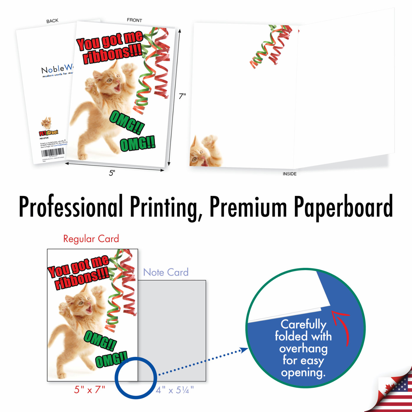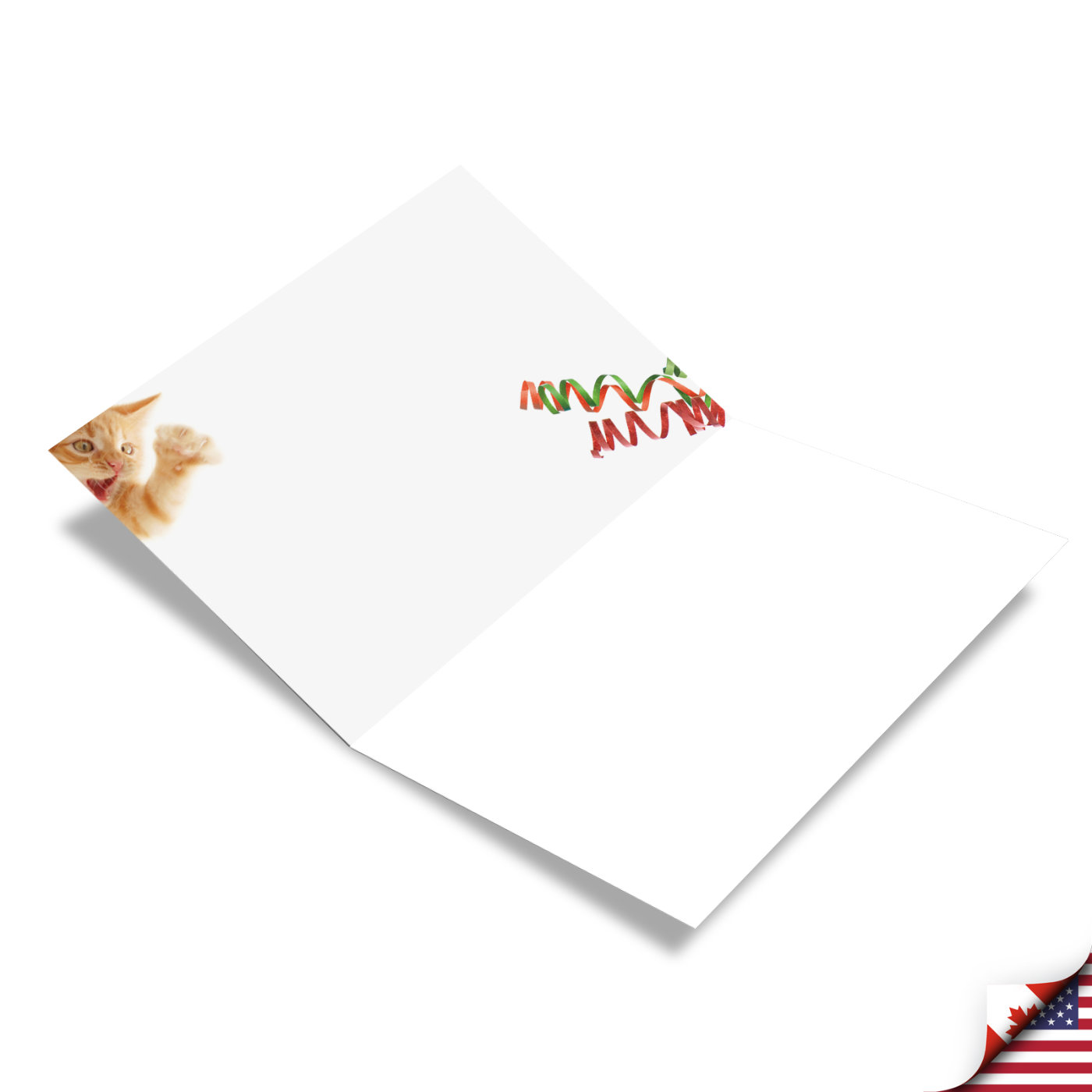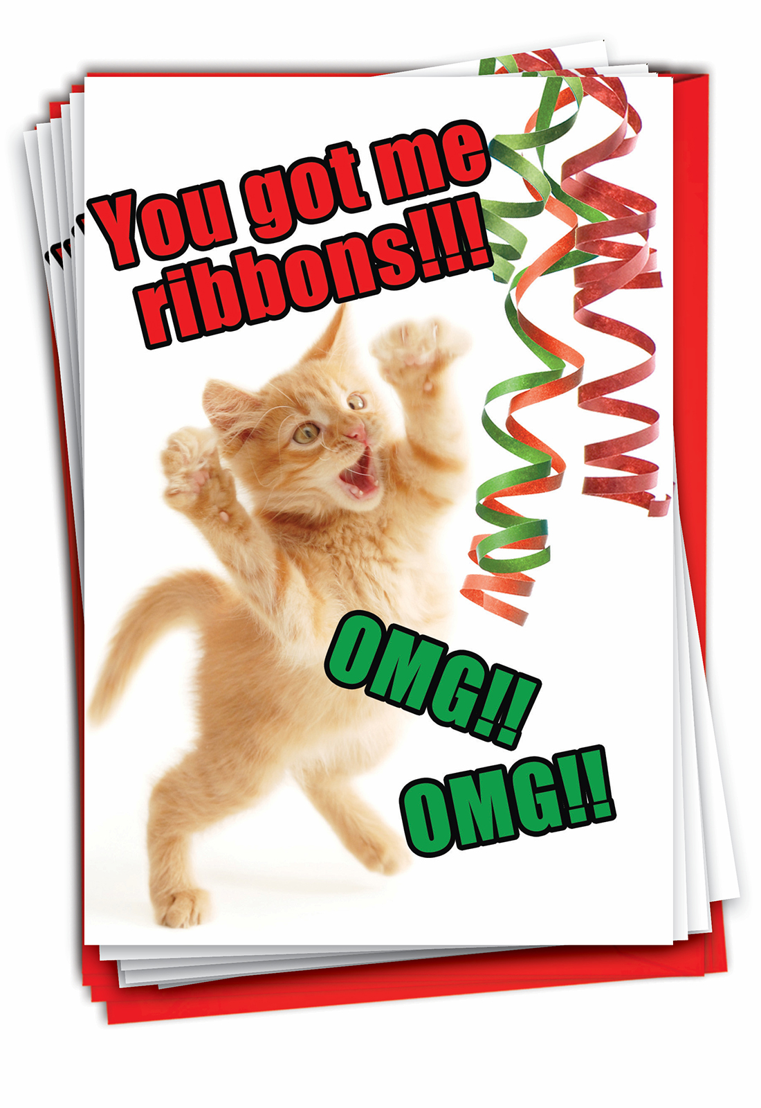 Cat Ribbons - Humorous Blank Christmas Box of 12 Cards, Wholesale