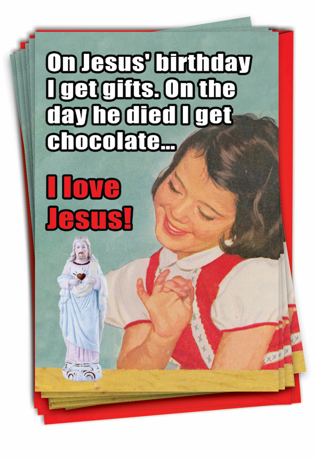 I Love Jesus - Humorous Christmas Box of 12 Cards, Wholesale