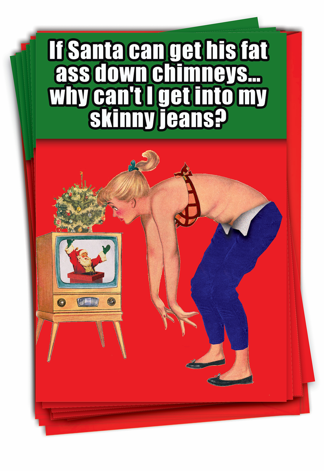 Skinny Jeans - Funny Blank Christmas Box of 12 Cards, Wholesale
