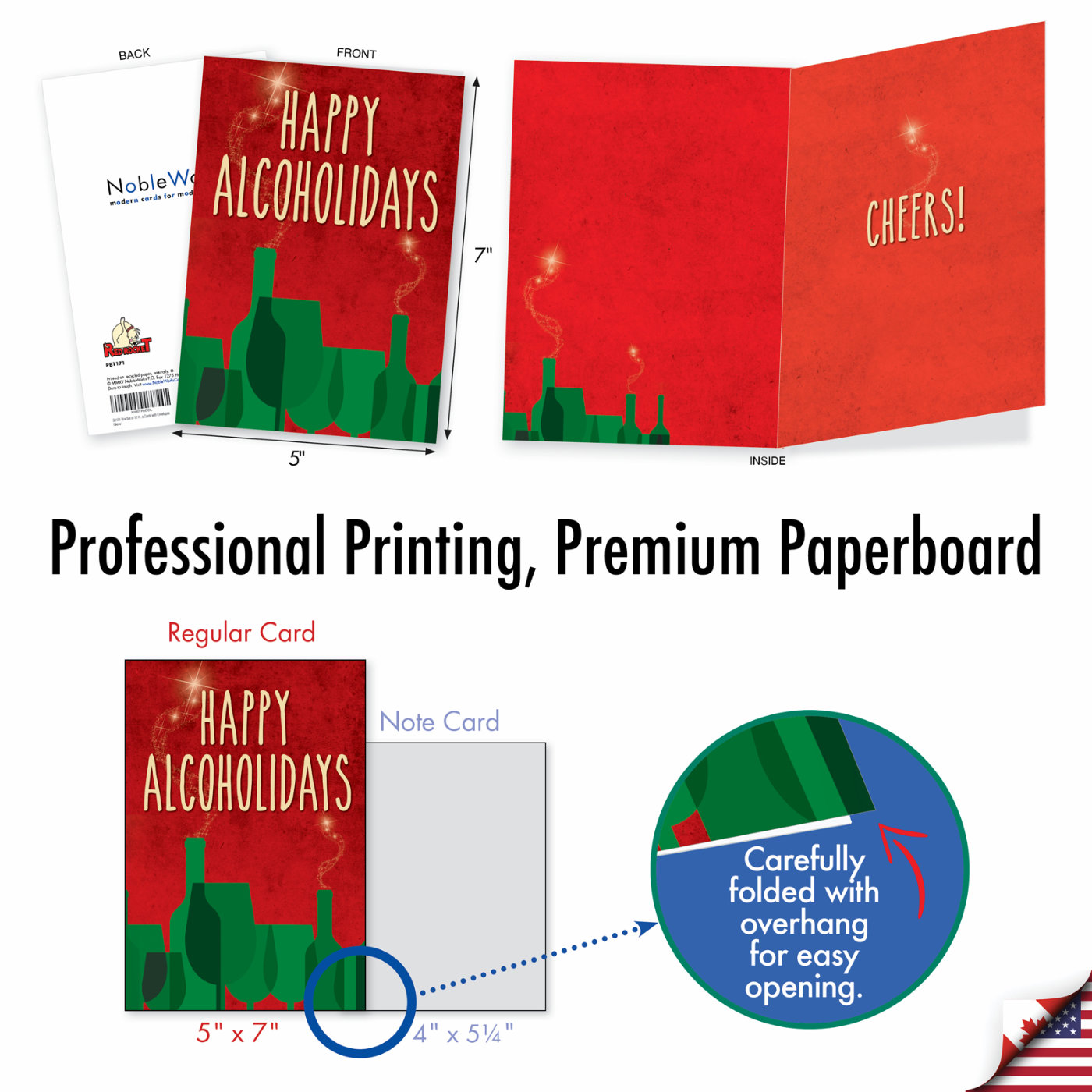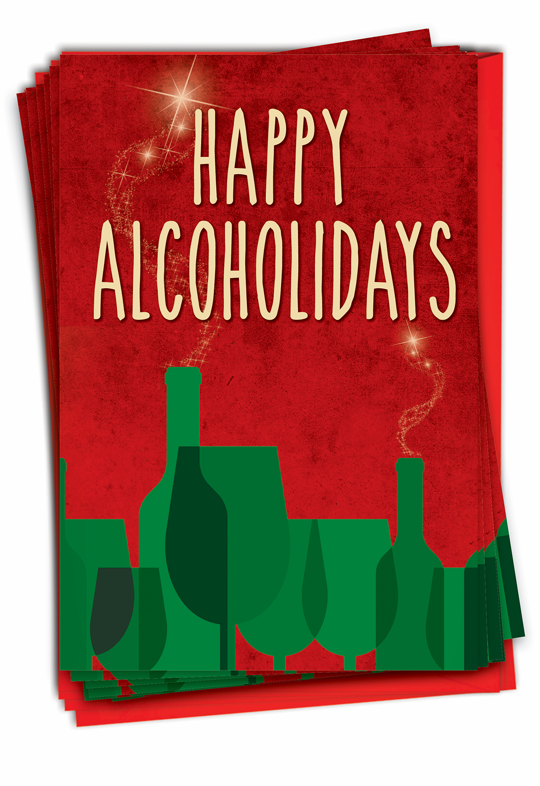 Happy Alcoholidays - Humorous Christmas Box of 12 Cards, Wholesale