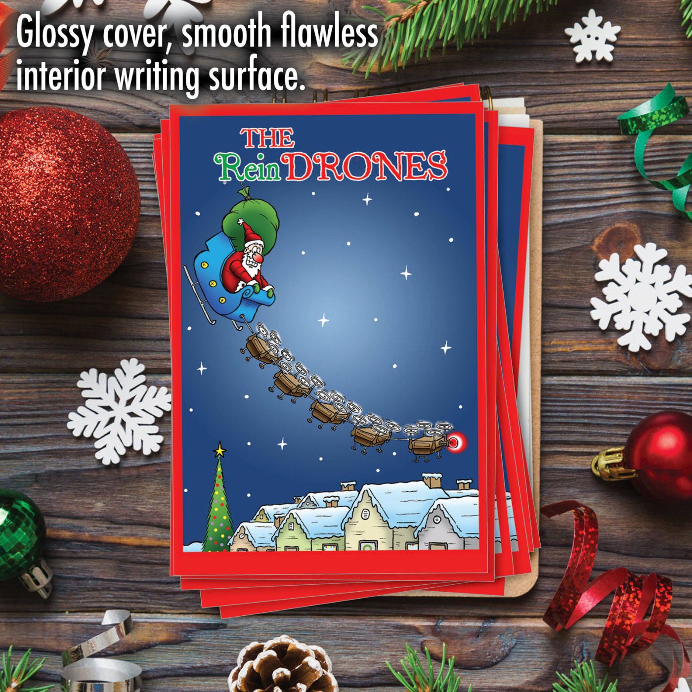 Santa's New Reindrones - Hilarious Christmas Box of 12 Cards, Wholesale
