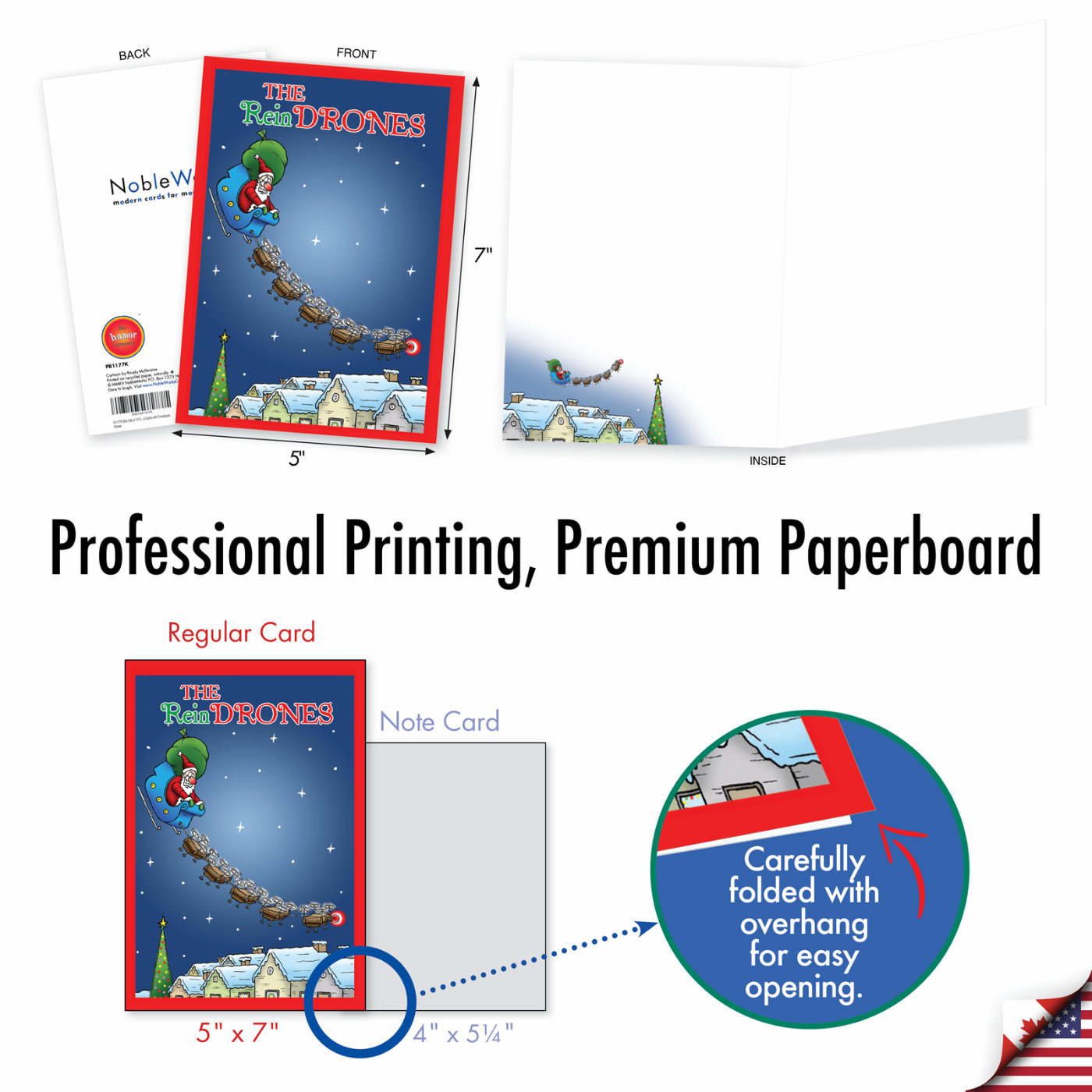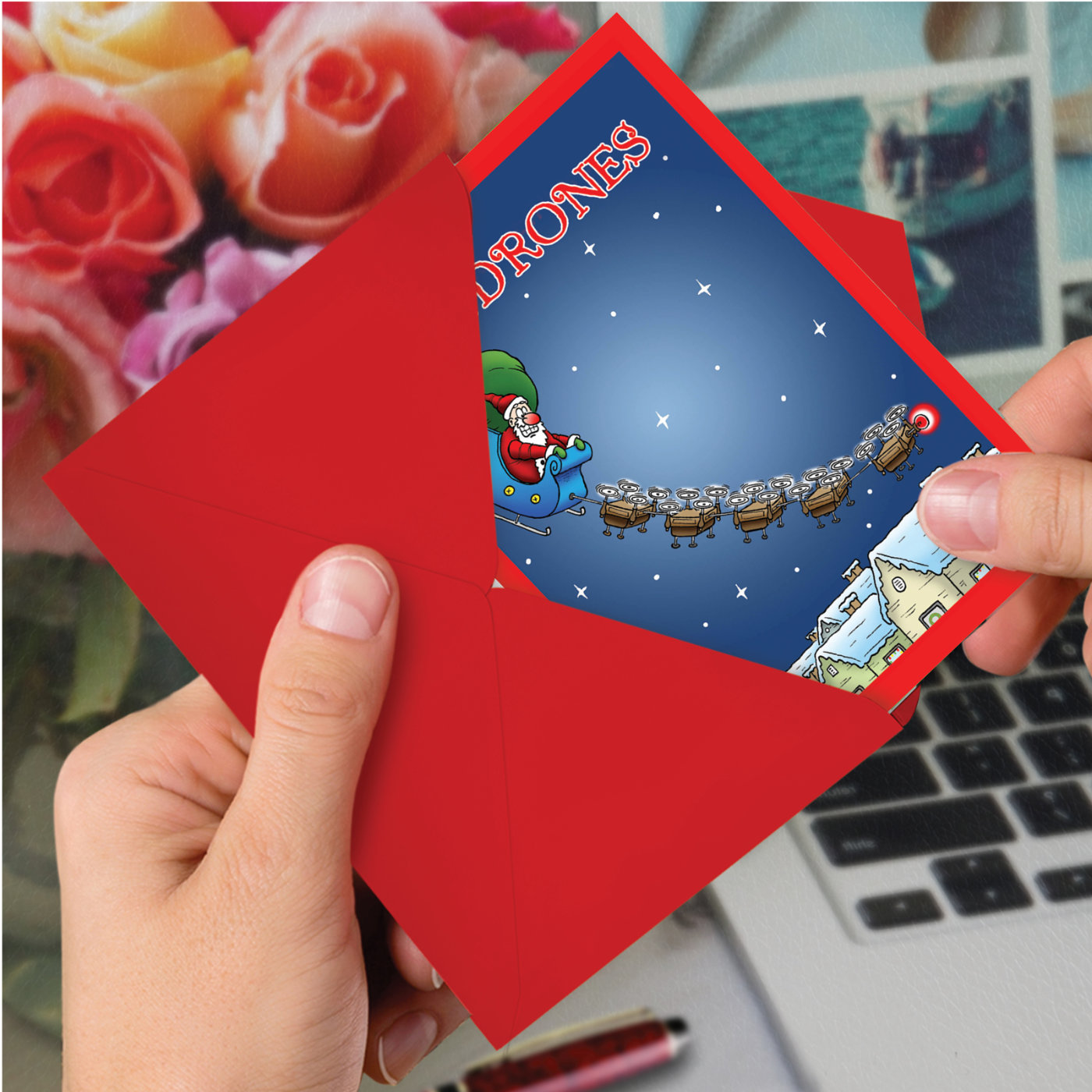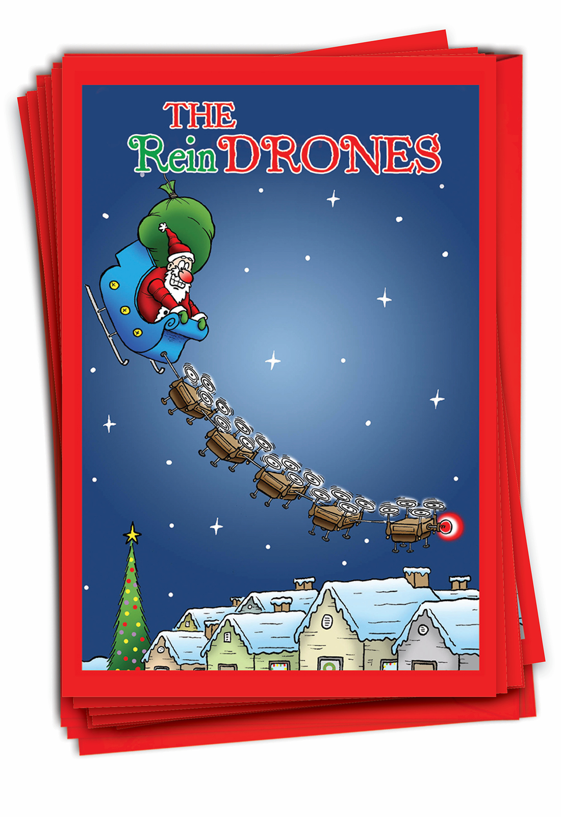 Santa's New Reindrones - Humorous Blank Christmas Box of 12 Cards, Wholesale