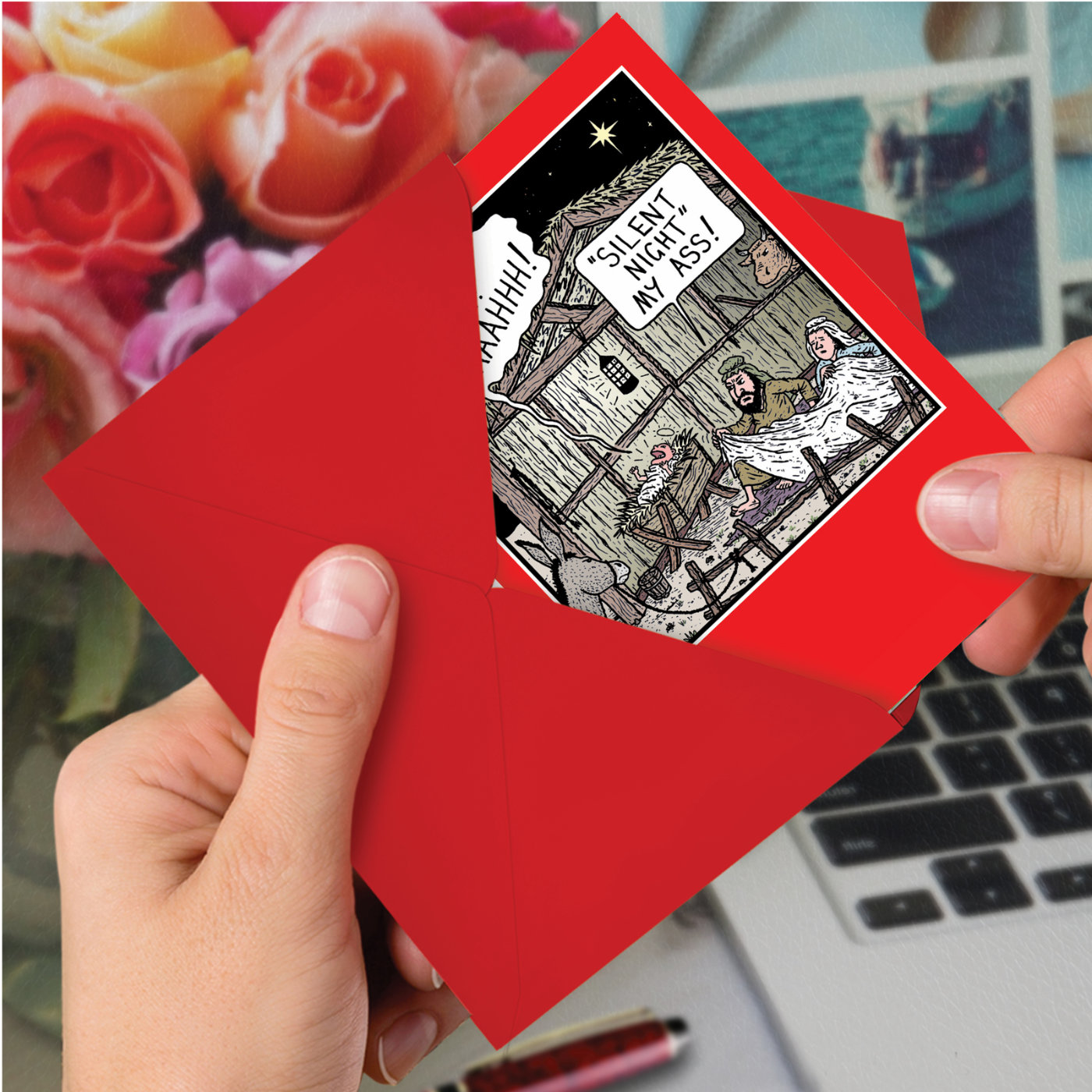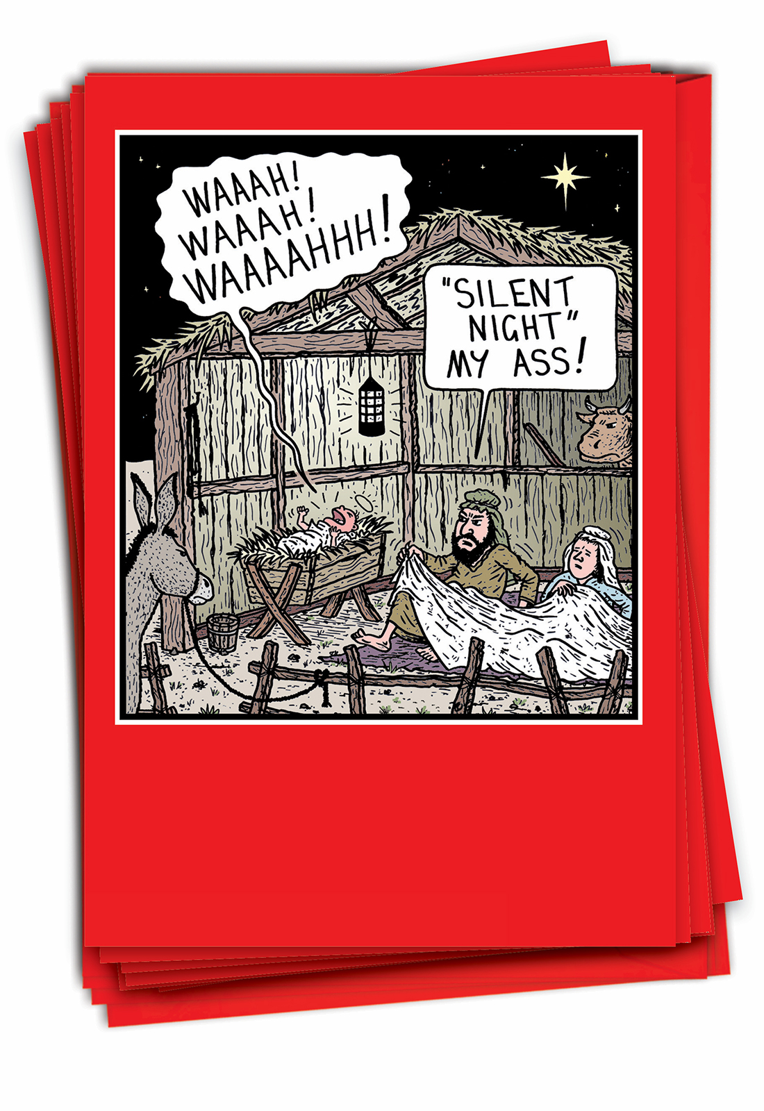 Silent Night My Ass - Hysterical Christmas Box of 12 Cards, Wholesale