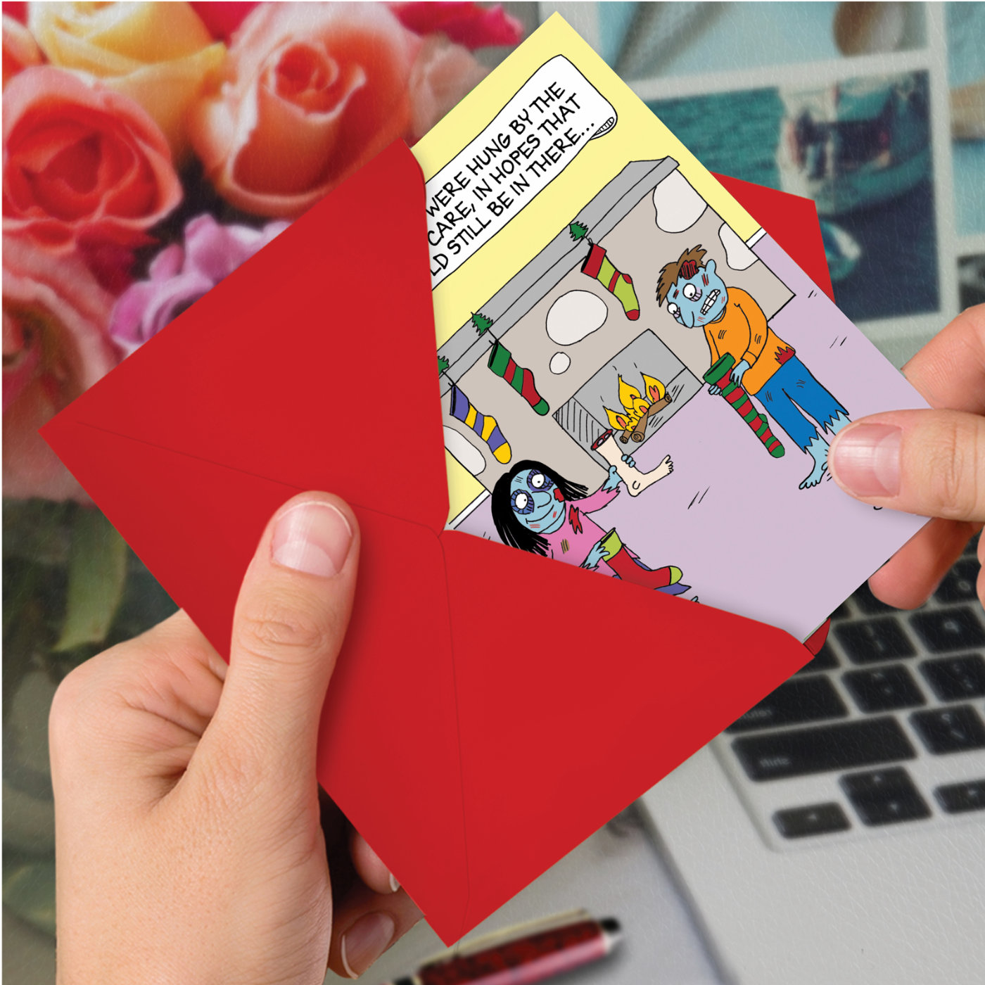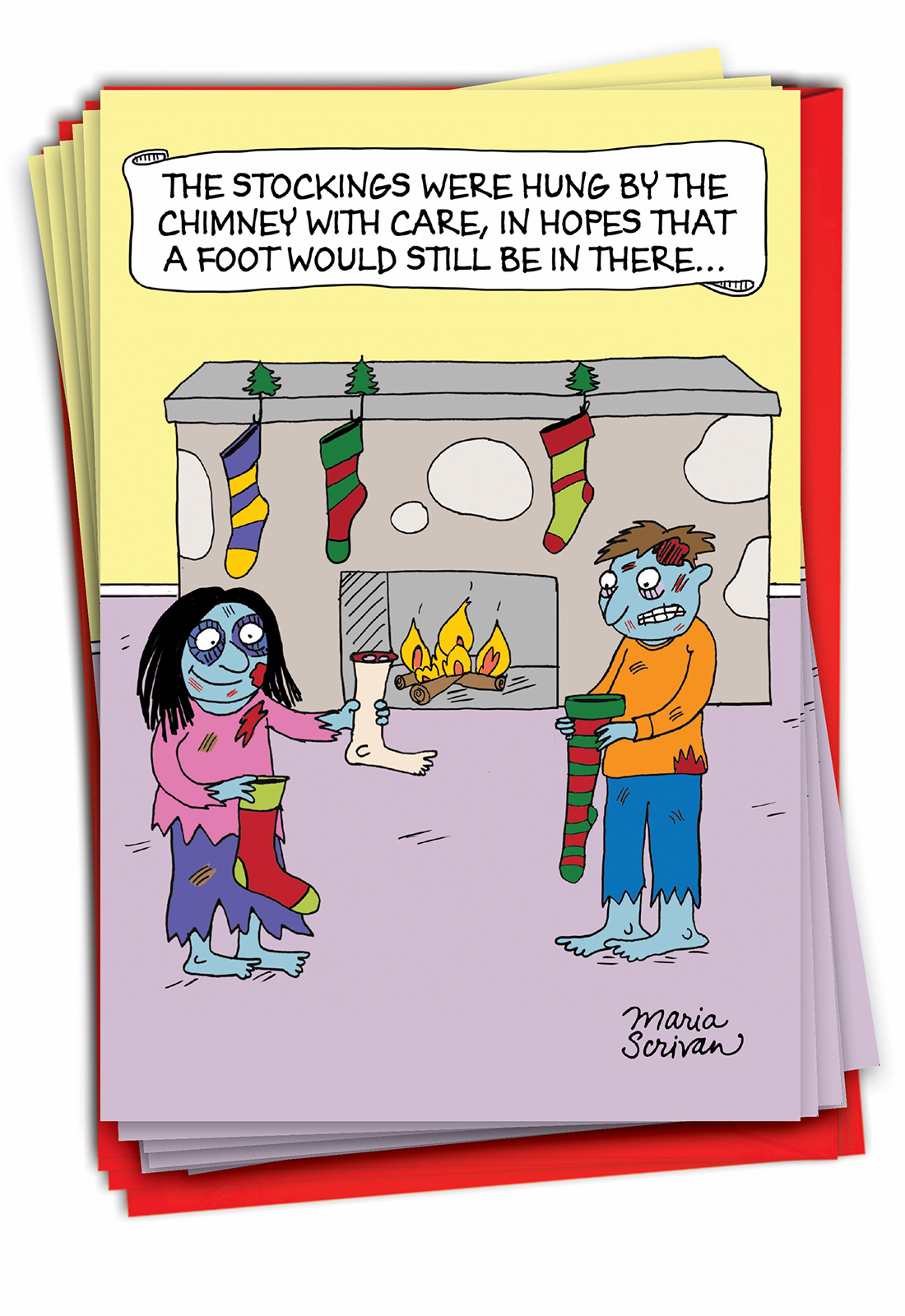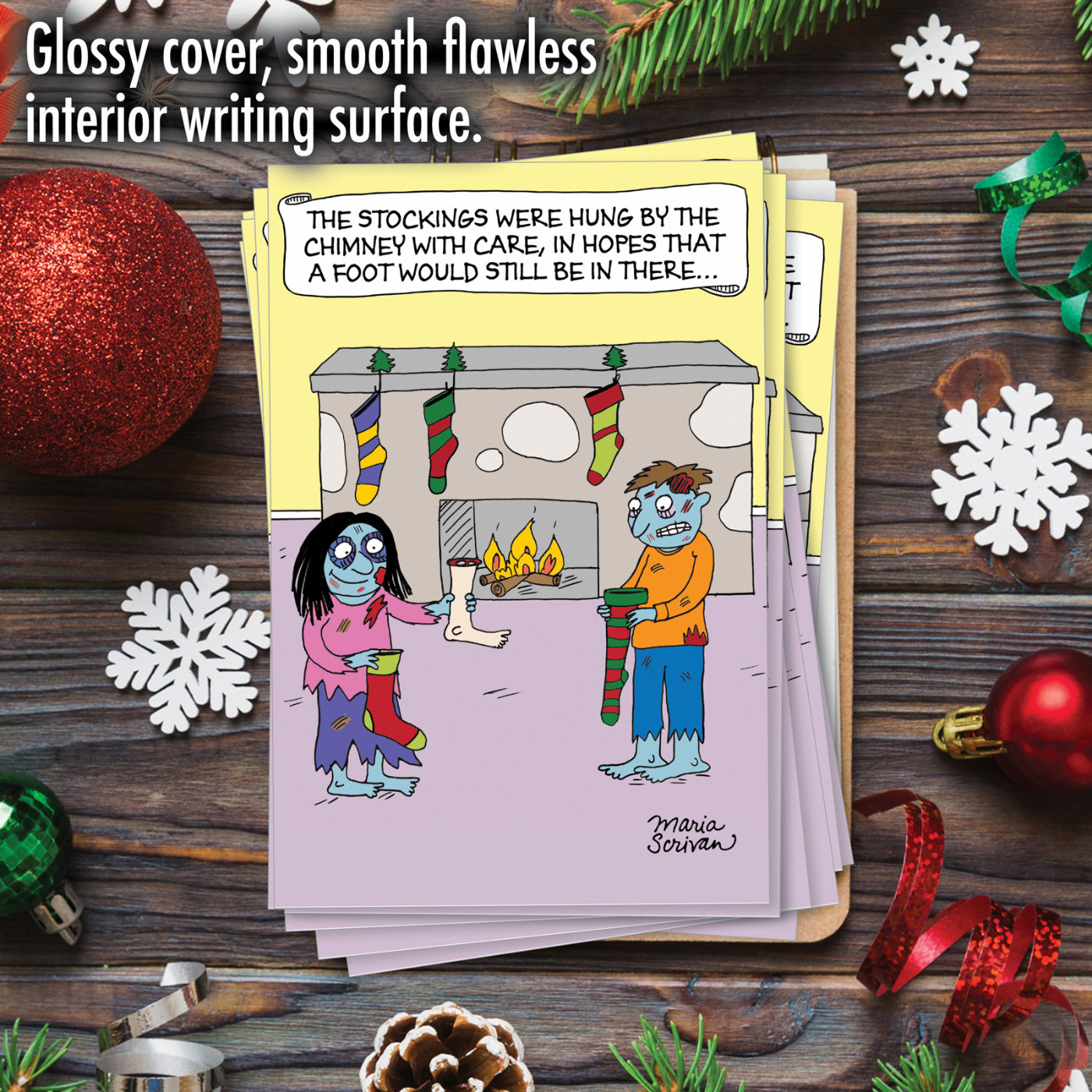 Zombie Stockings - Hysterical Christmas Box of 12 Cards, Wholesale
