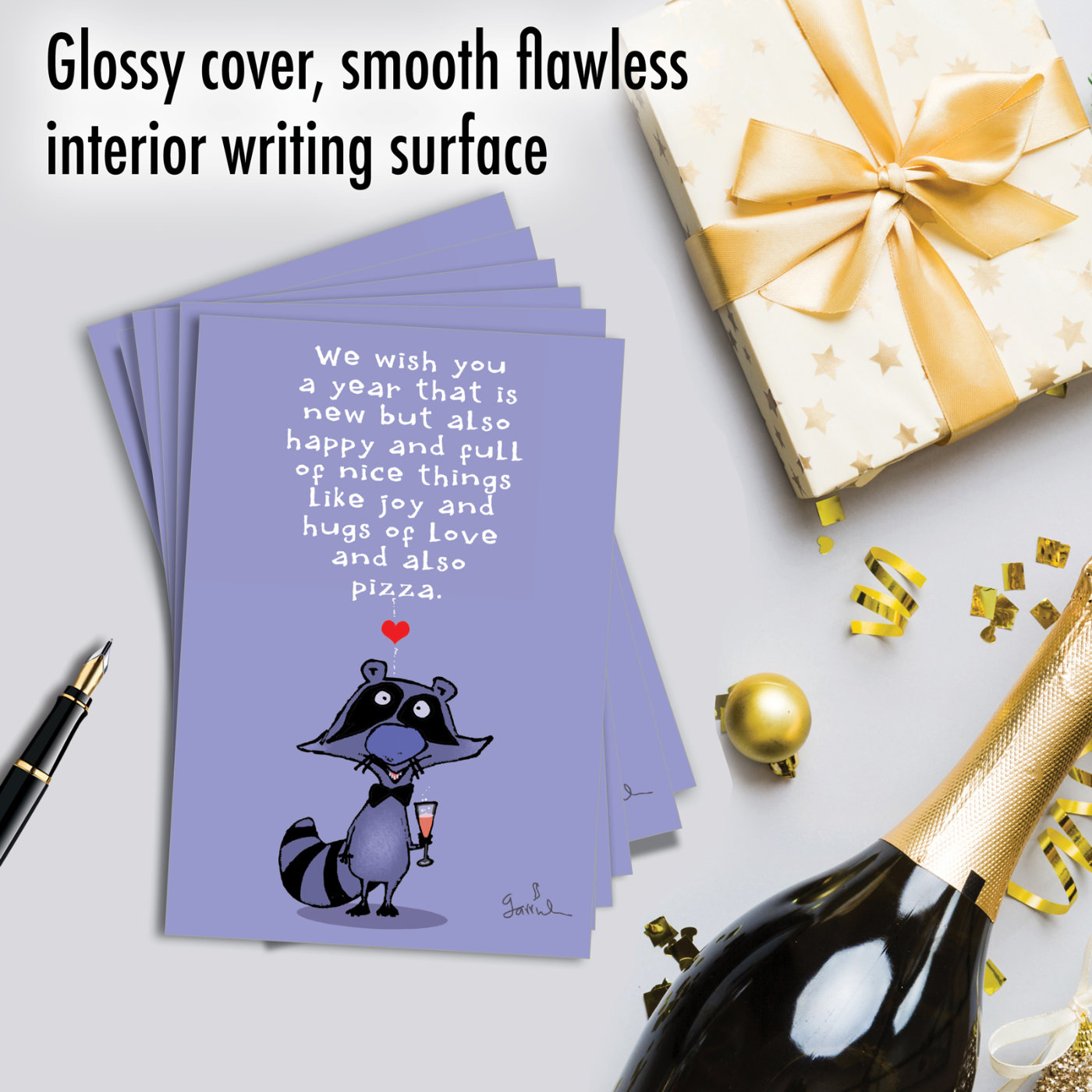 New Year Raccoon - Hysterical New Year Box of 12 Cards, Wholesale