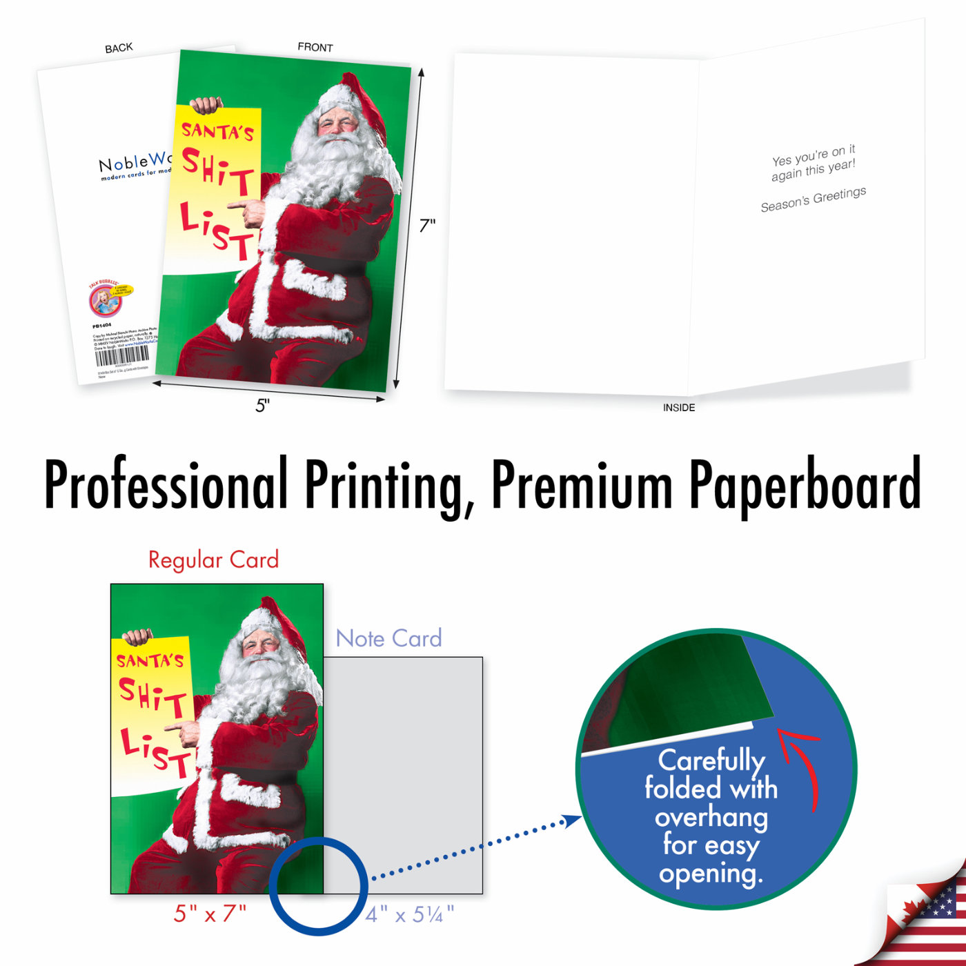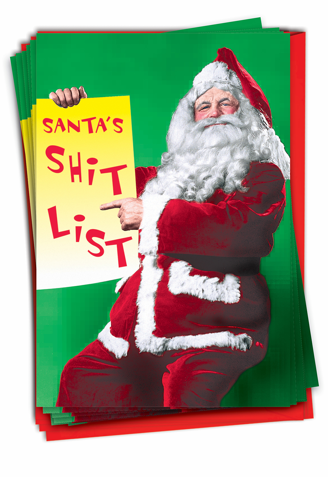 Santa Shit List - Humorous Christmas Box of 12 Cards, Wholesale