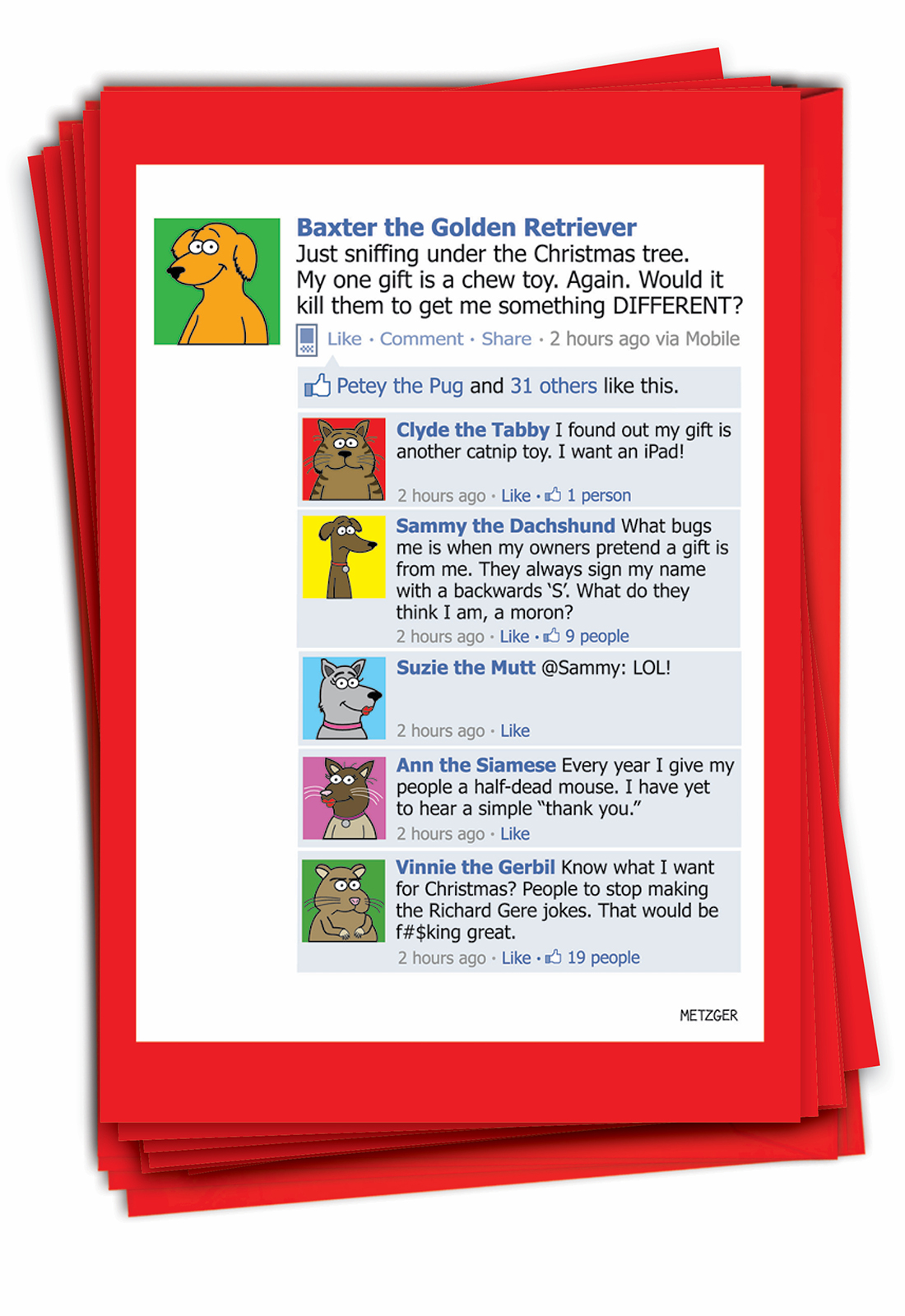 Dog Social Media - Funny Christmas Box of 12 Cards, Wholesale