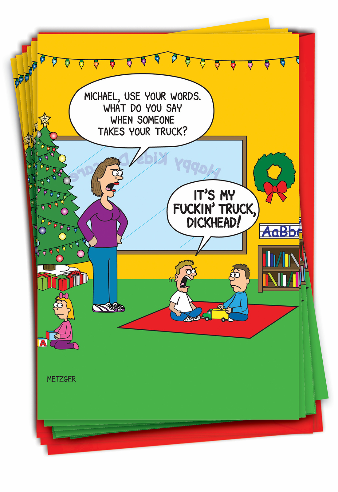 F'in Dickhead - Funny Blank Christmas Box of 12 Cards, Wholesale