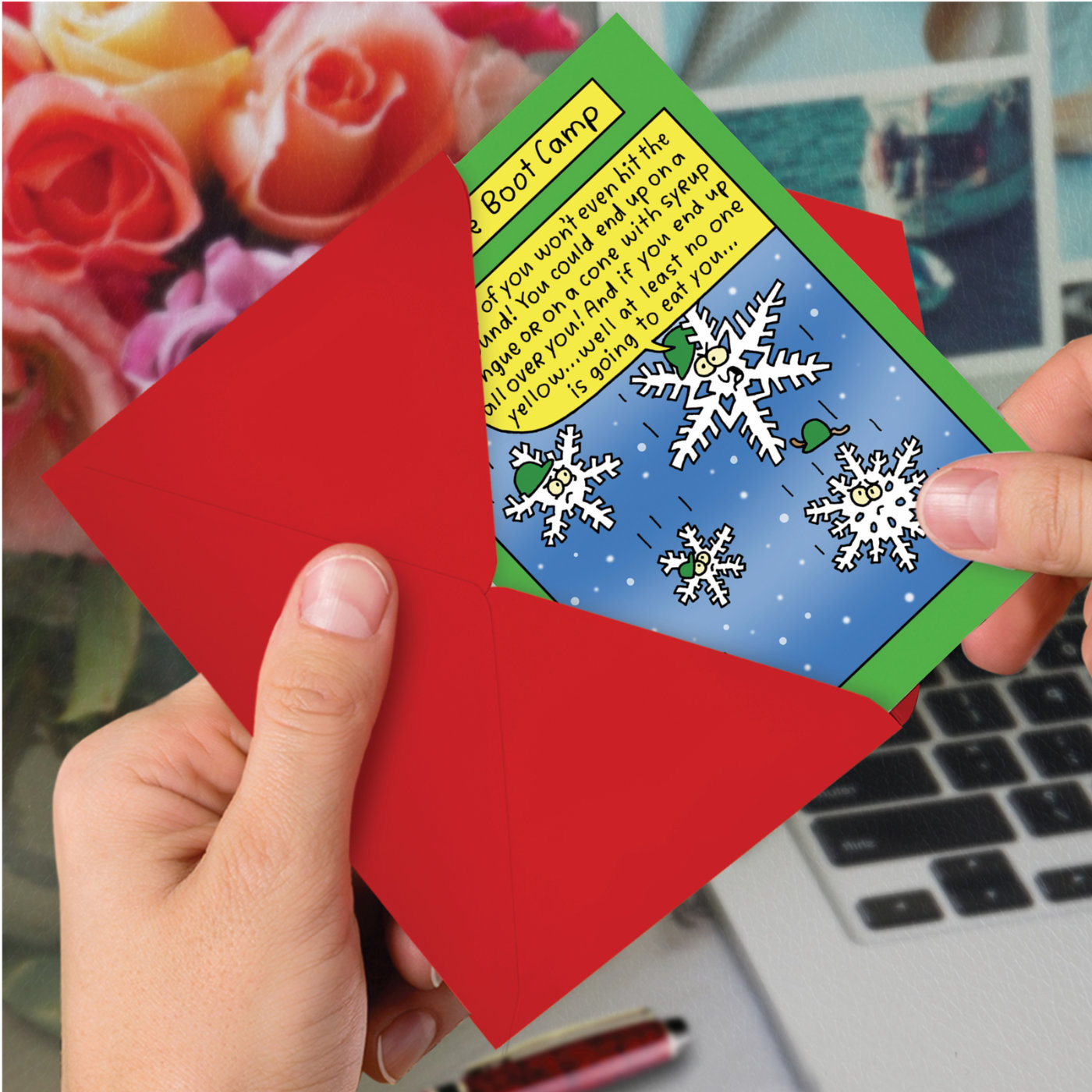 Snowflake Boot Camp - Funny Blank Christmas Box of 12 Cards, Wholesale