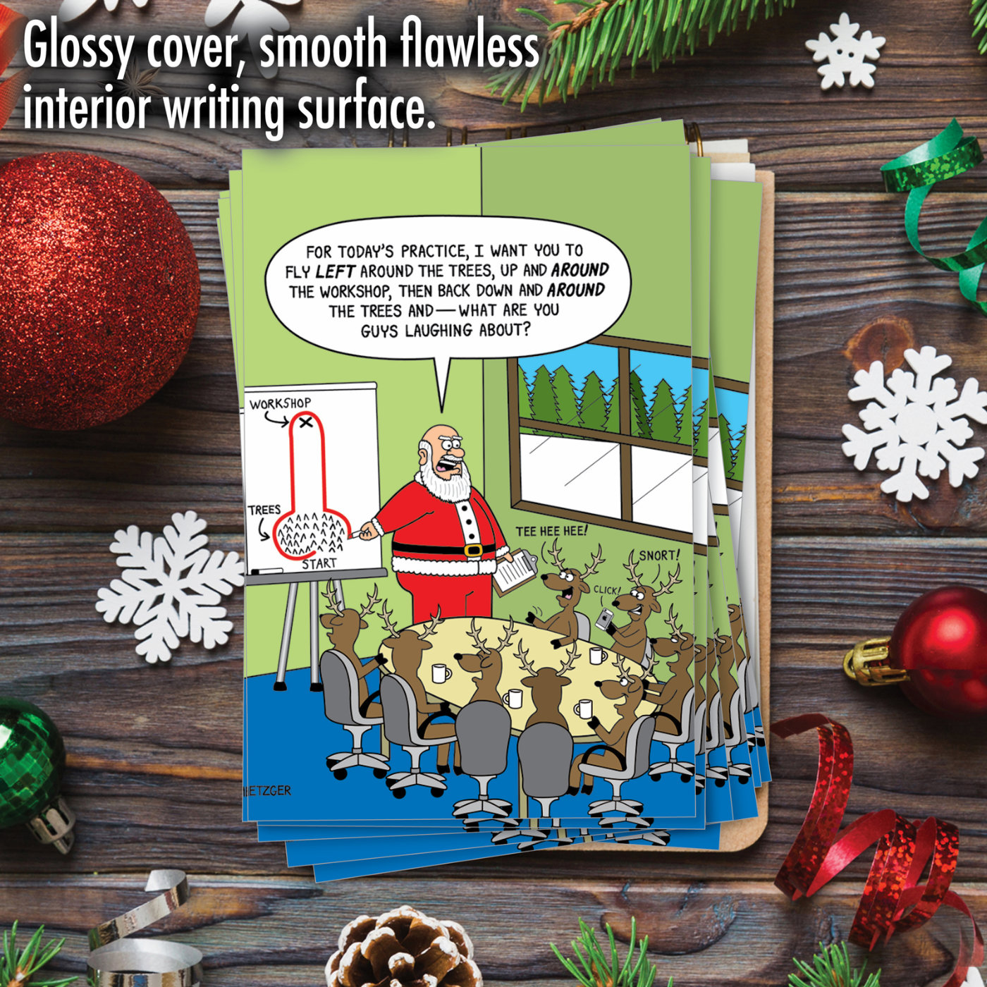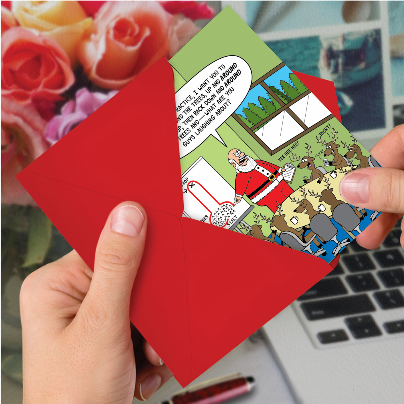 Reindeer Around the Tree - Funny Christmas Box of 12 Cards, Wholesale