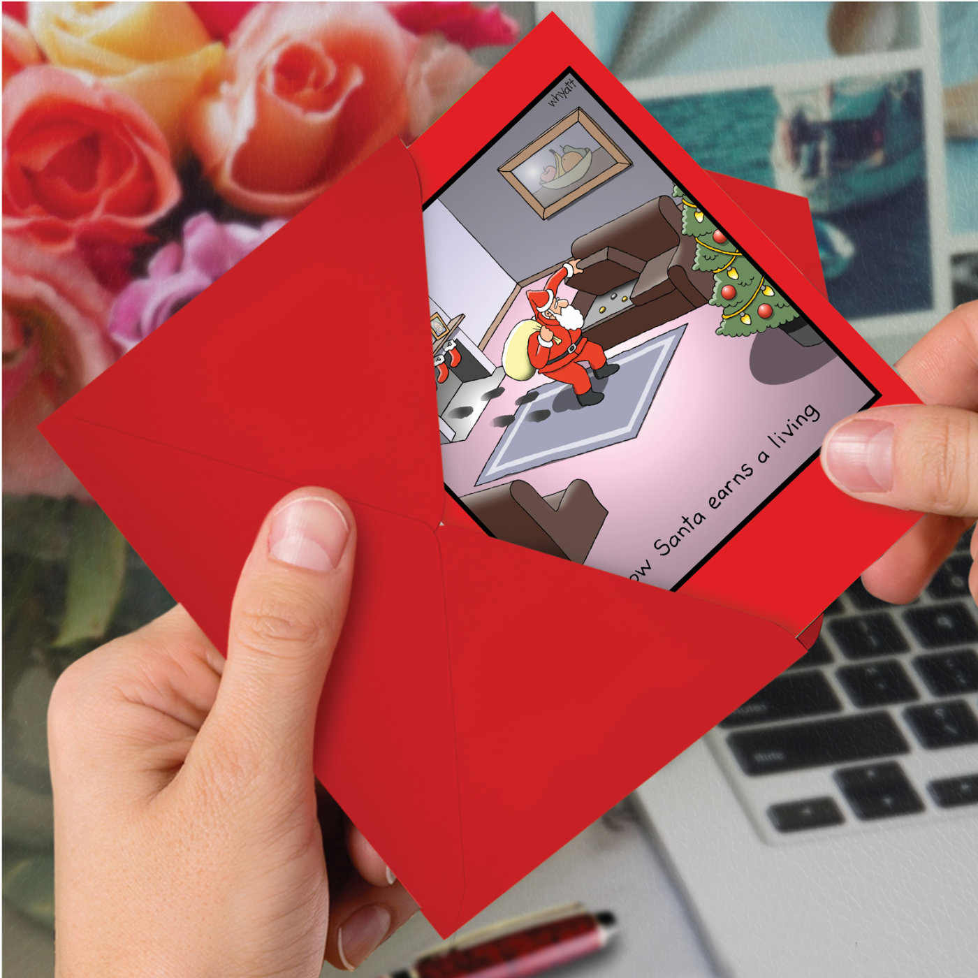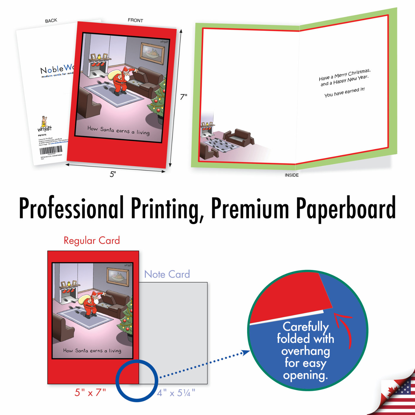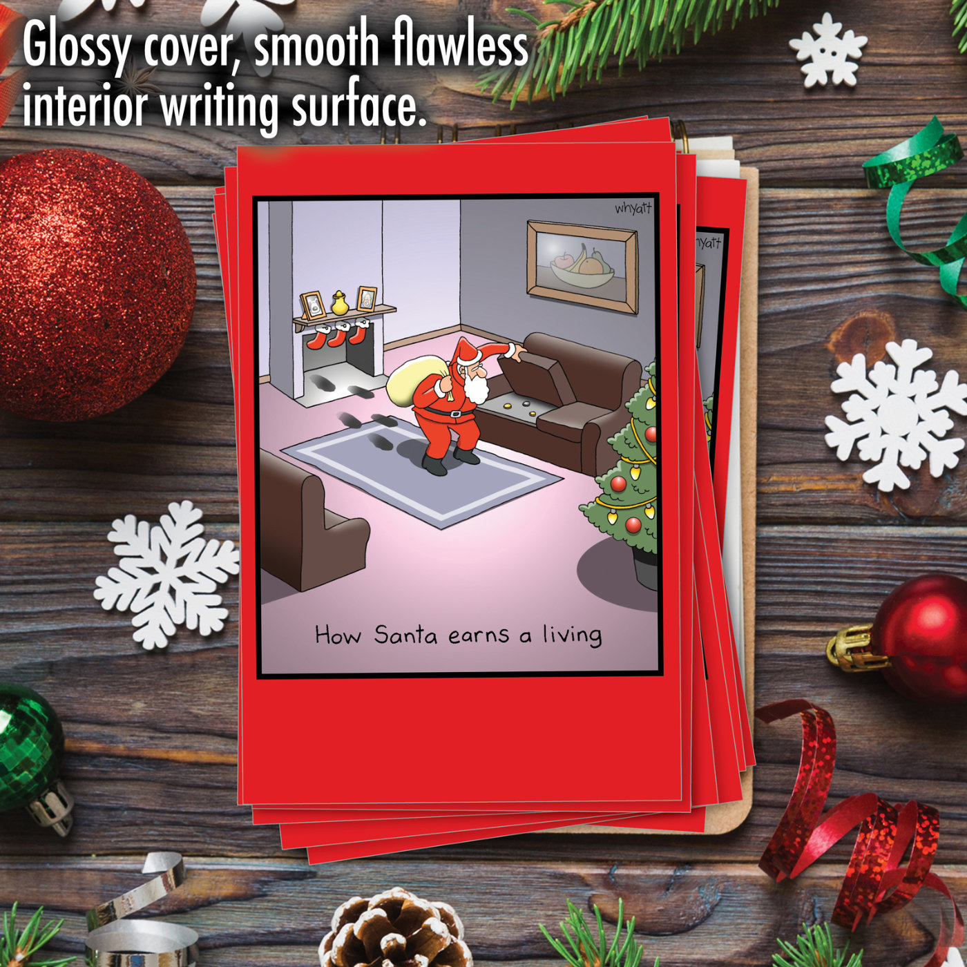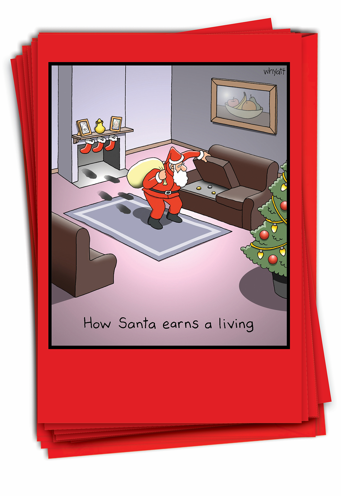 Santa Earns Living - Humorous Christmas Box of 12 Cards, Wholesale