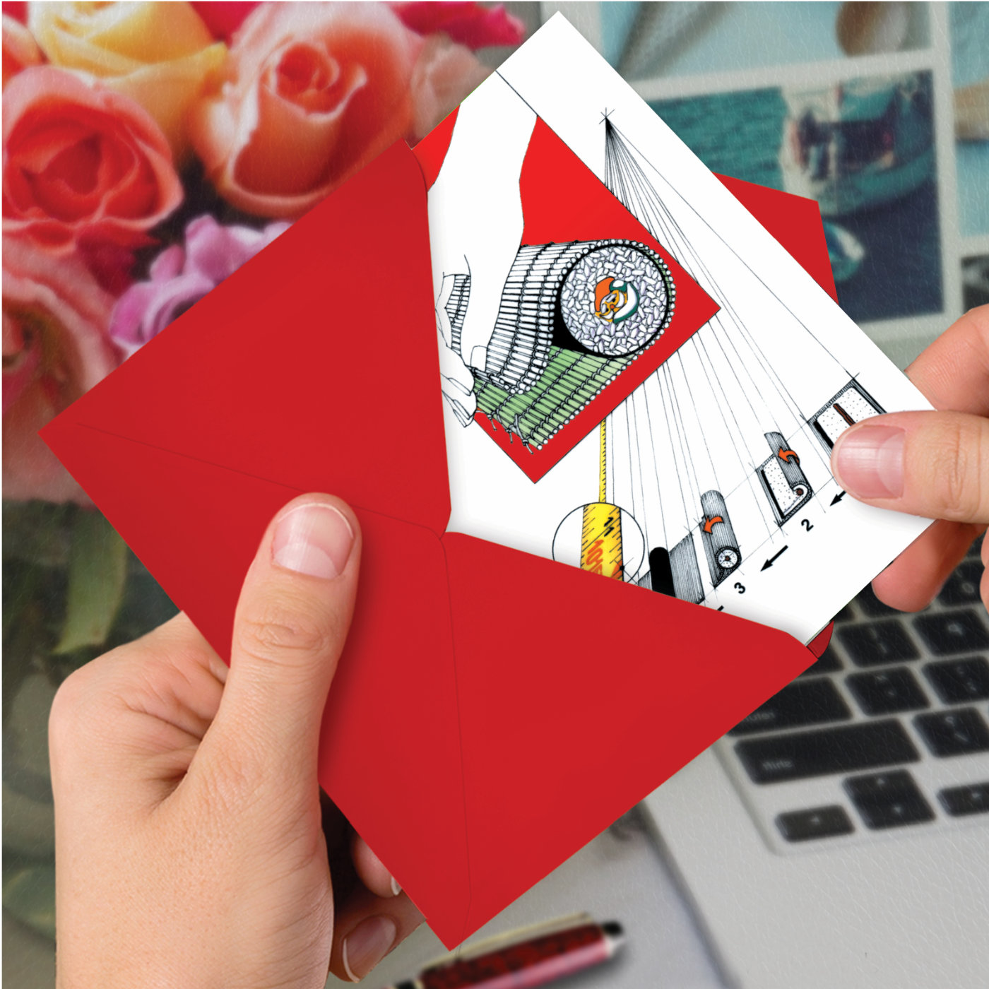 Sushi Elf - Artistic Christmas Box of 12 Cards, Wholesale