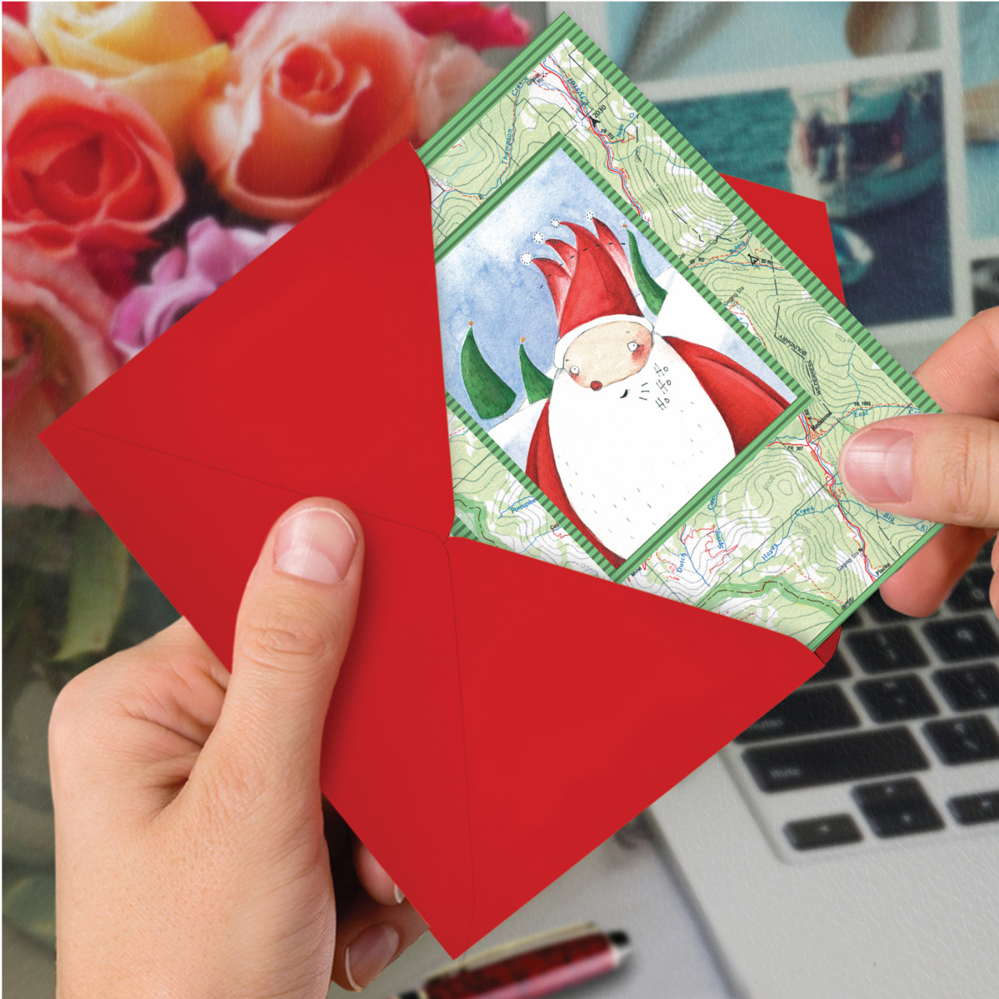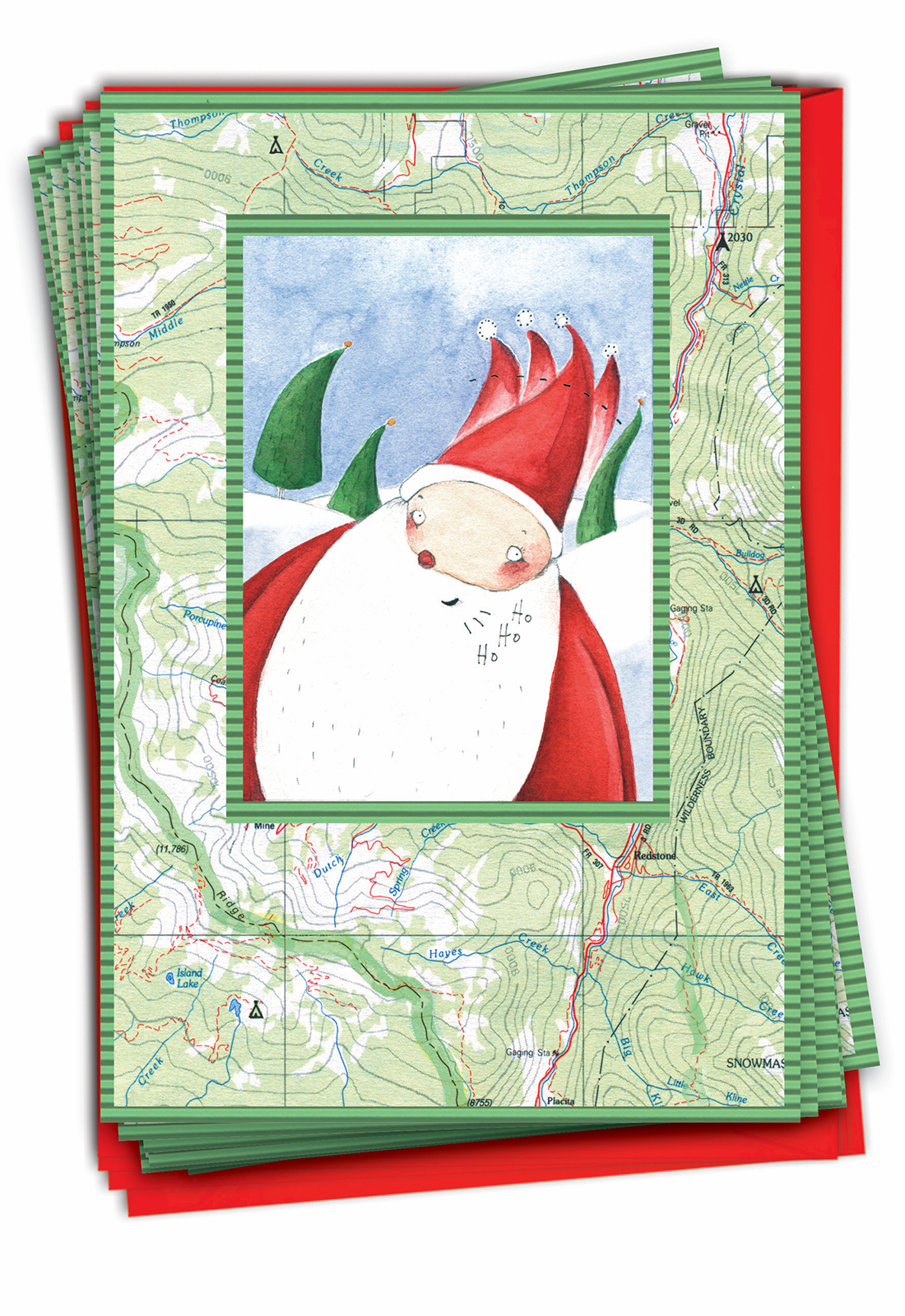 Image Only: Santa On A Corrugated Background Of A Topographical Map