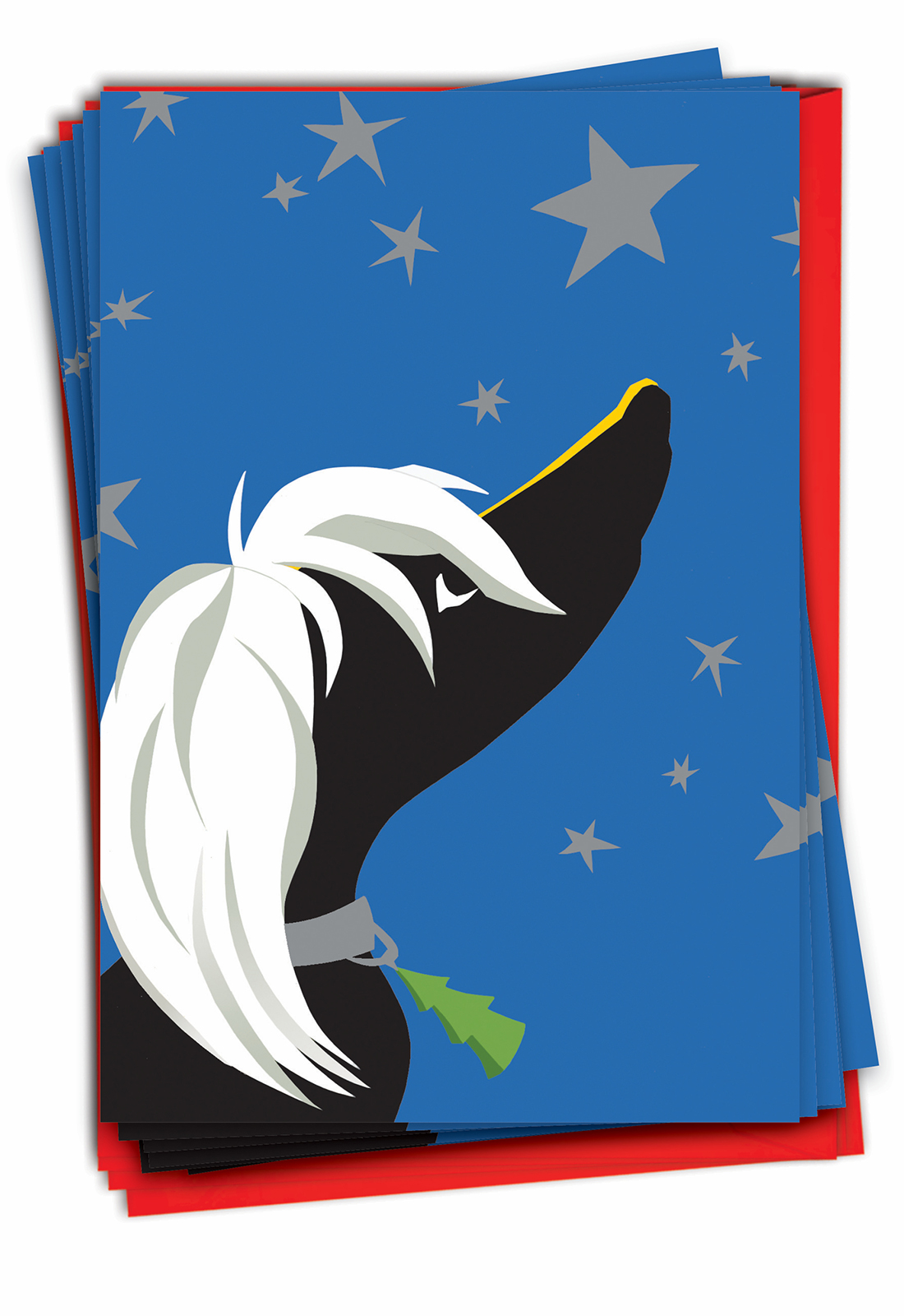 Xmas Black and White Dog - Artful Christmas Box of 12 Cards, Wholesale