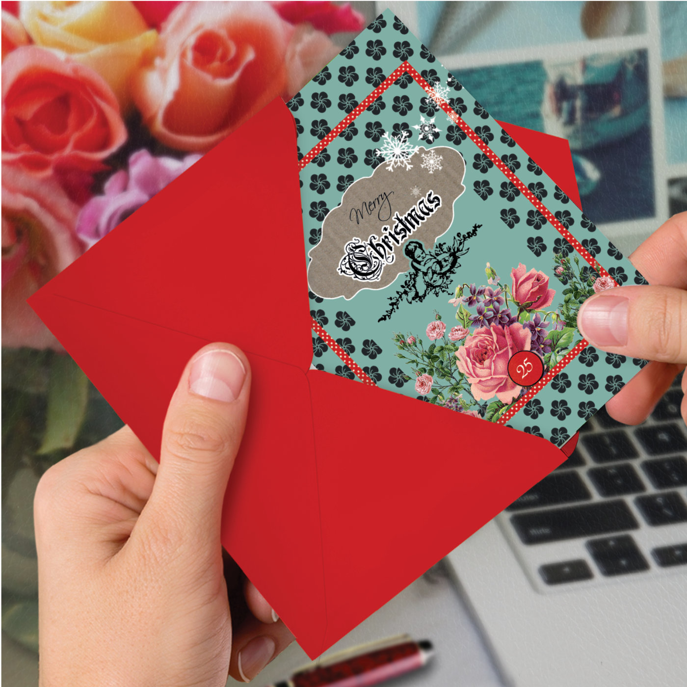 A Rosy Christmas - Artistic Christmas Box of 12 Cards, Wholesale