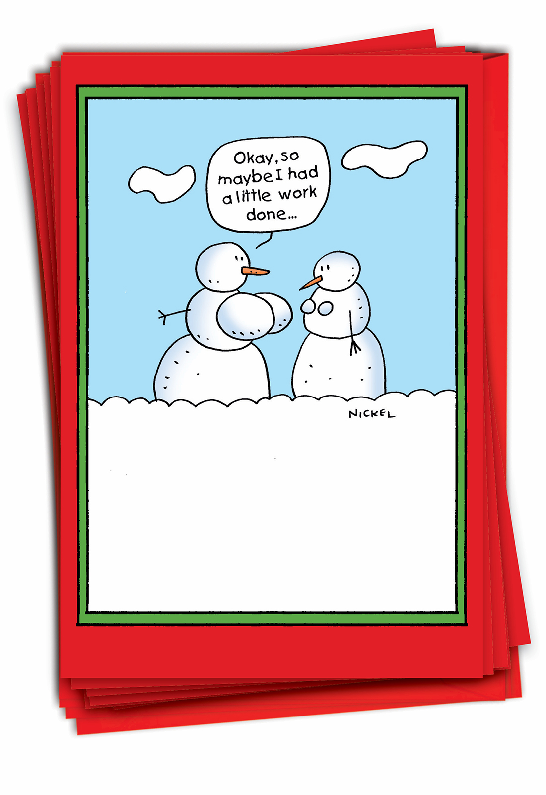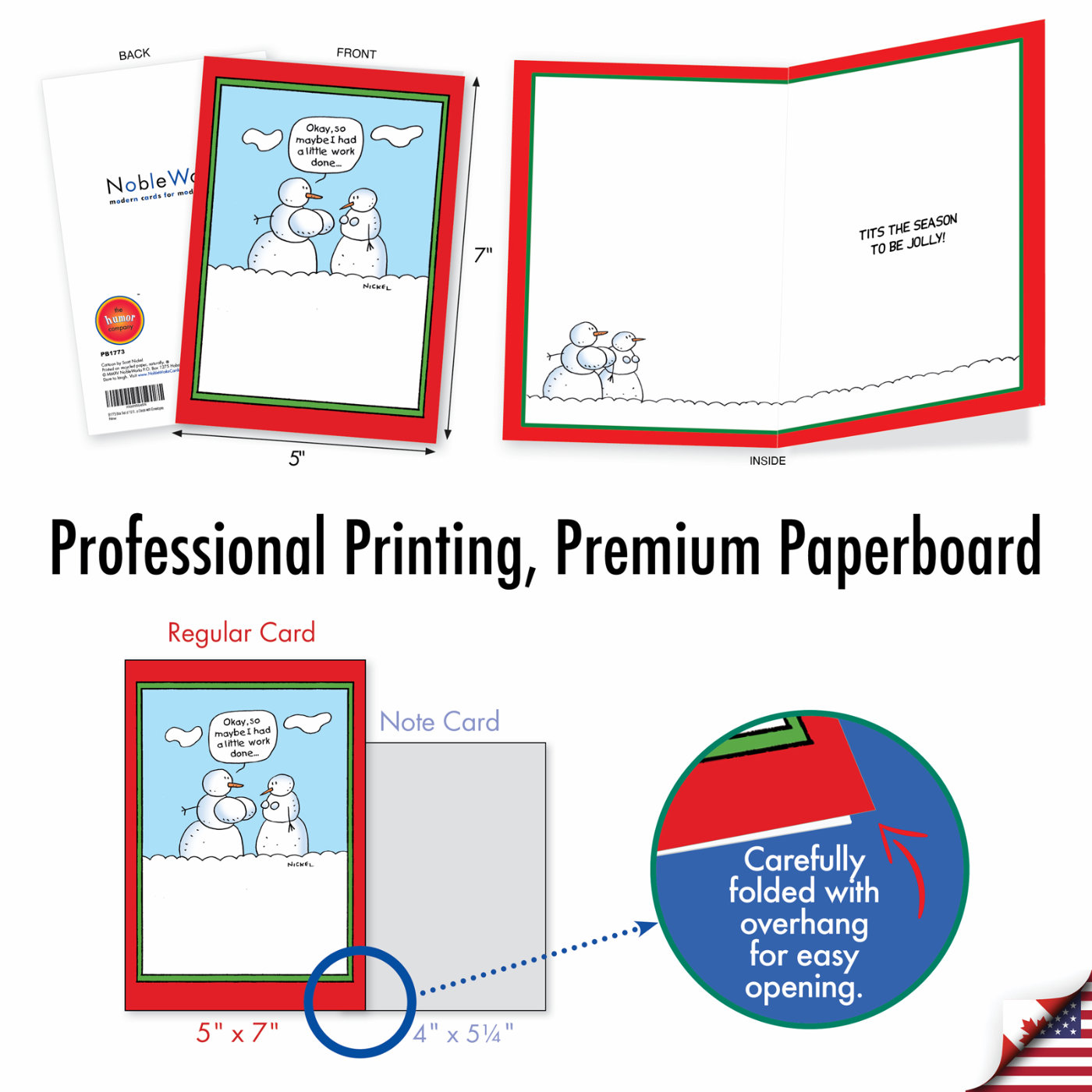 Snowman Boob Job - Funny Christmas Box of 12 Cards, Wholesale