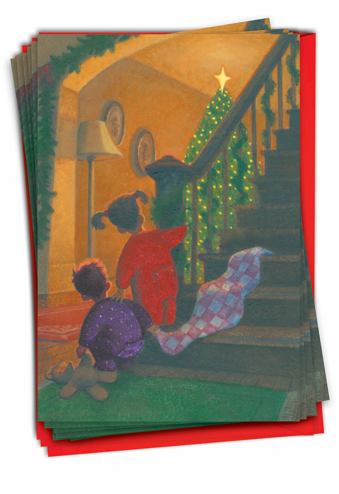 Xmas Stair Kids - Artful Christmas Box of 12 Cards, Wholesale