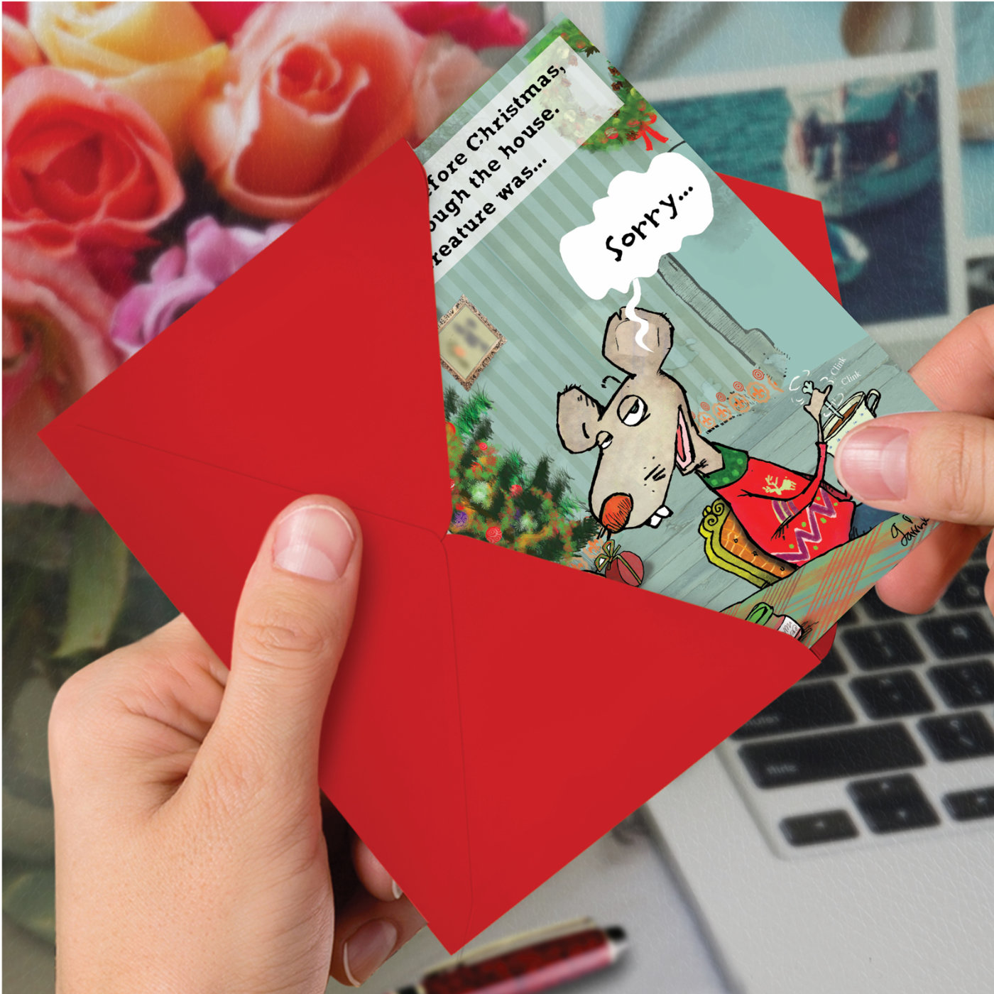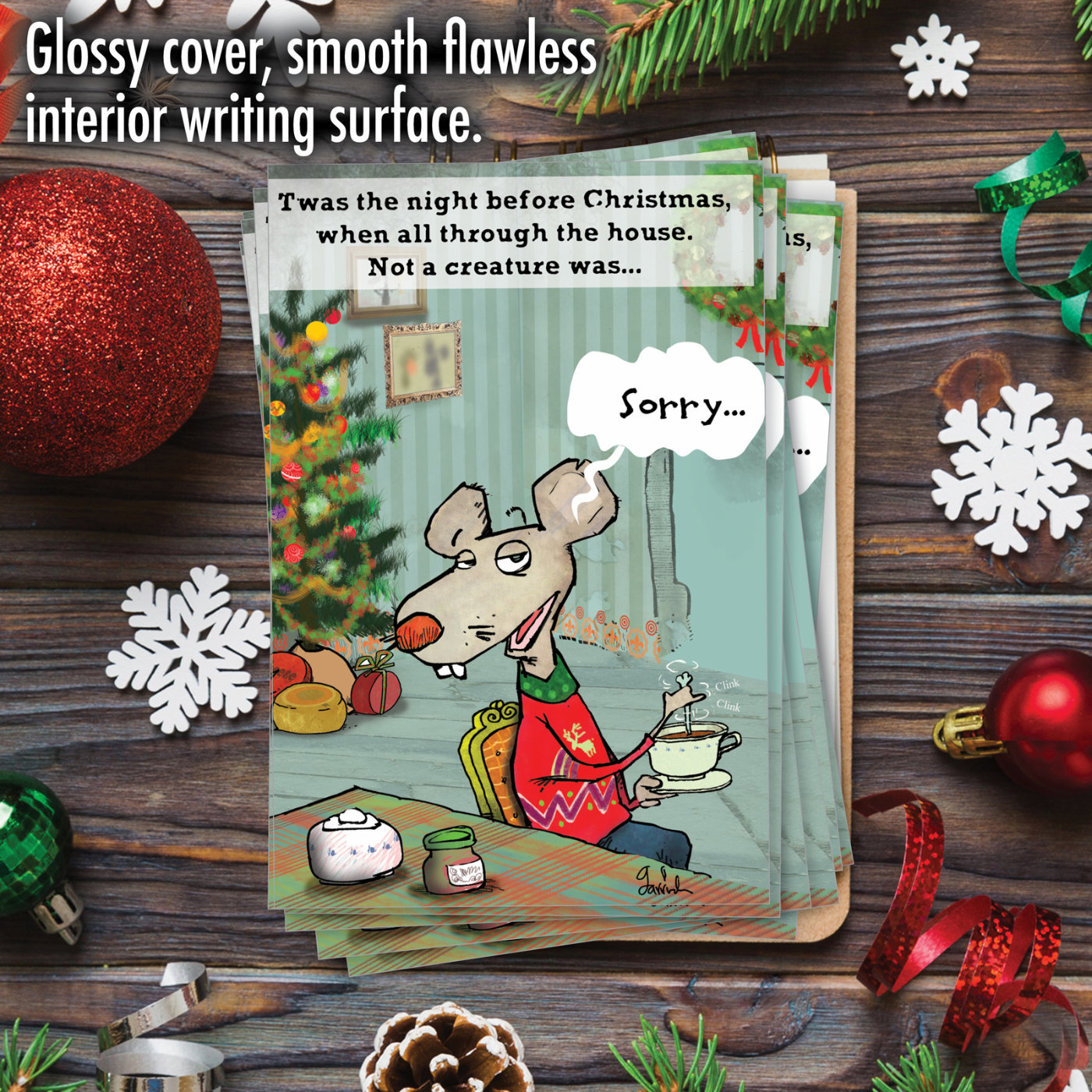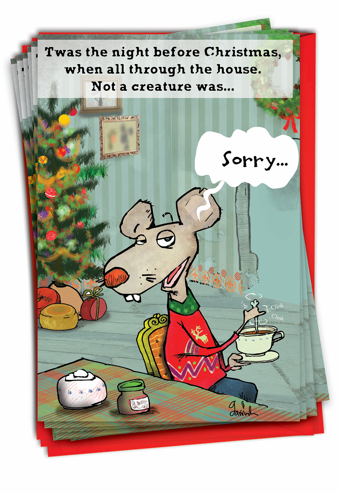 No More Stirring Mouse - Hilarious Christmas Box of 12 Cards, Wholesale