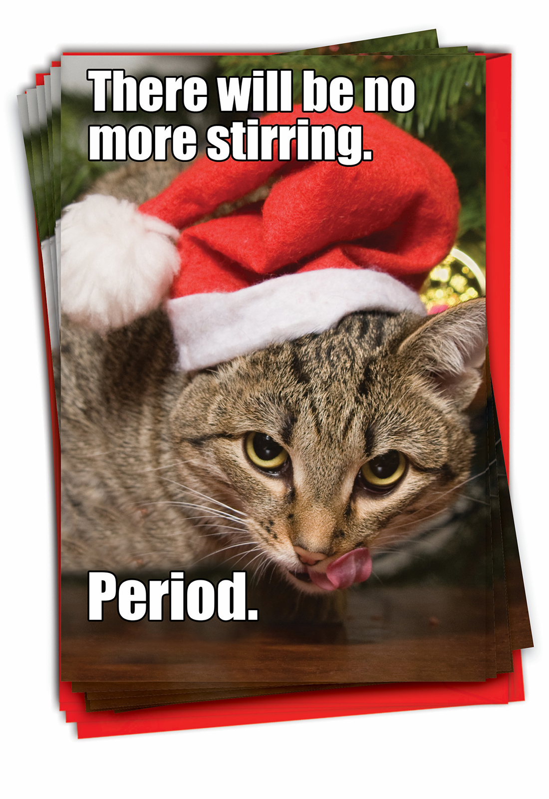 No More Stirring Cat - Hilarious Christmas Box of 12 Cards, Wholesale