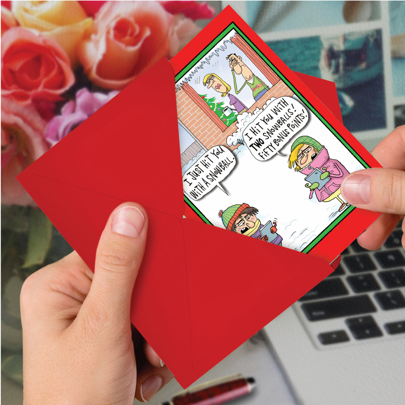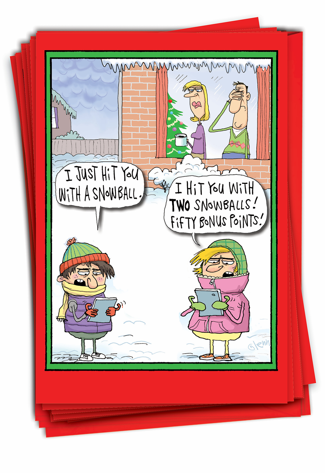 iPad Snowball Fight - Hilarious Christmas Box of 12 Cards, Wholesale