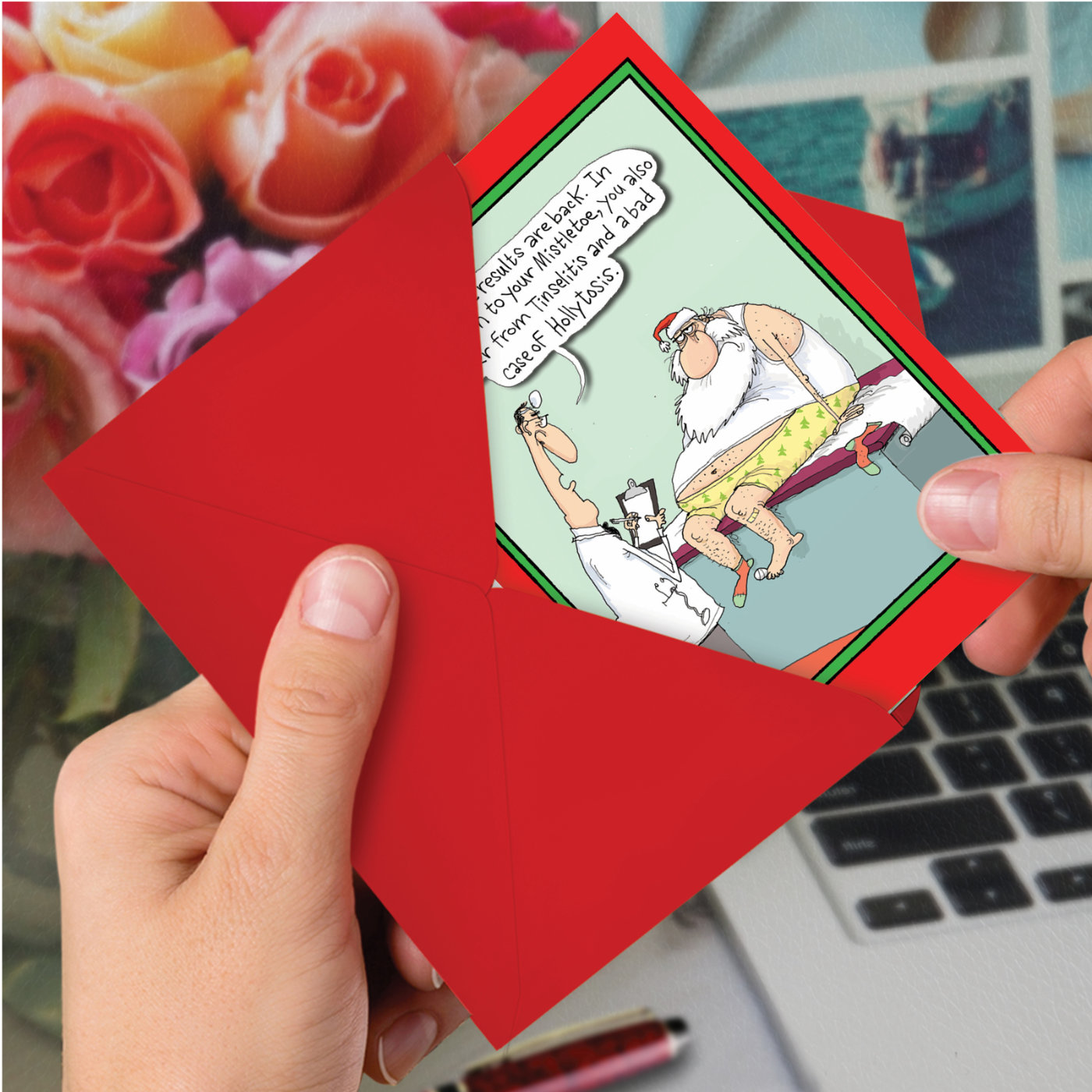 Santa Doctor Visit - Humorous Christmas Box of 12 Cards, Wholesale