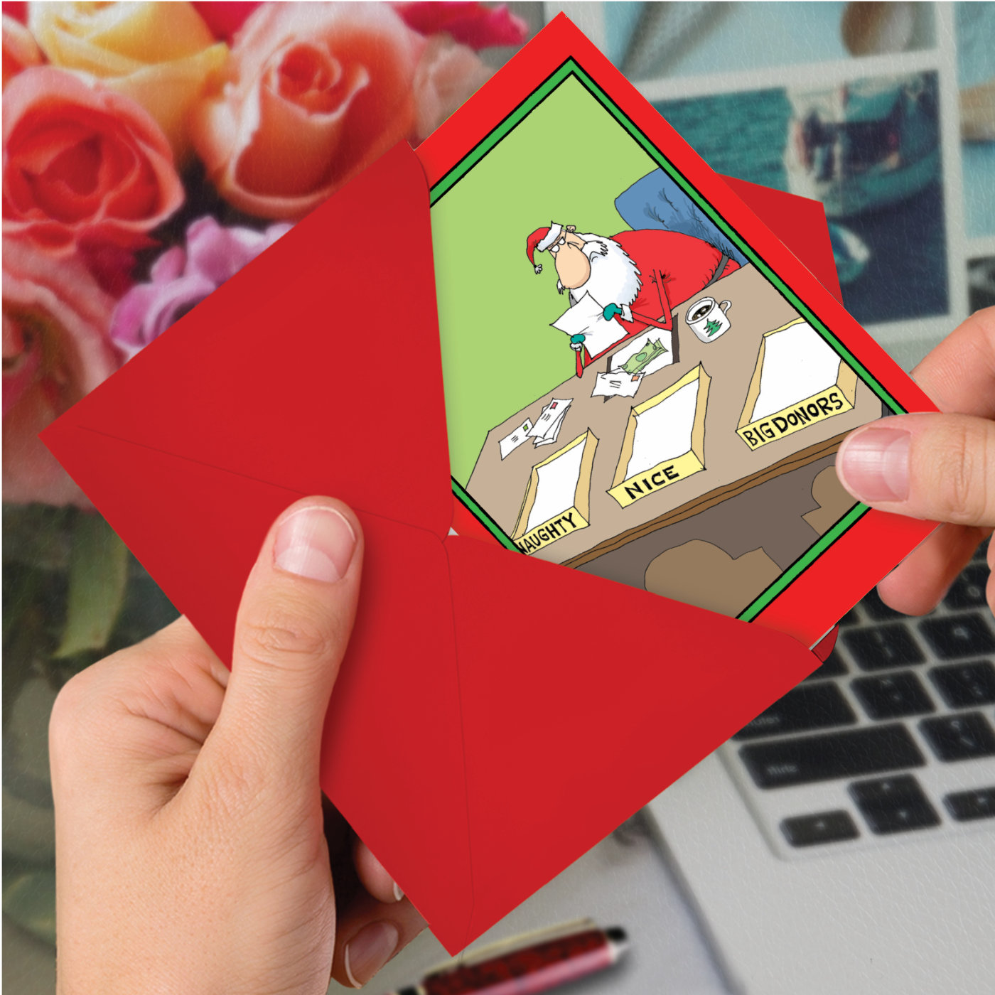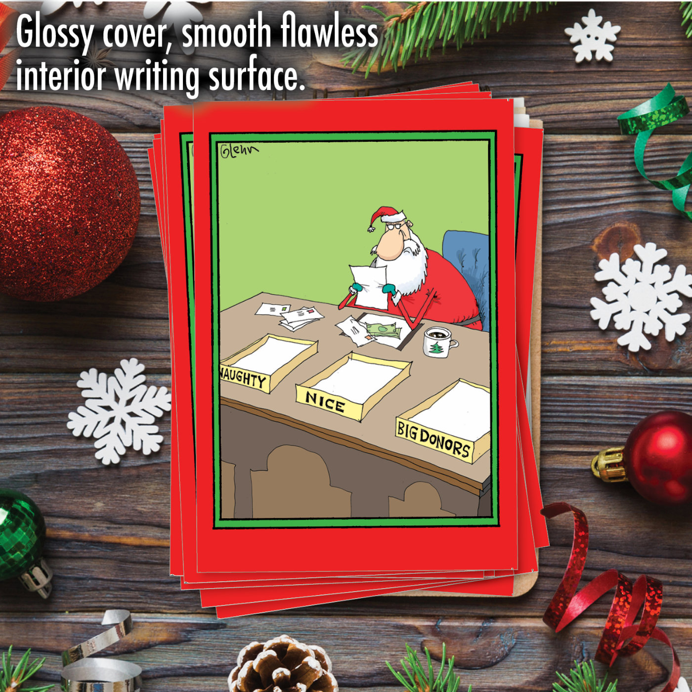Naughty Nice Big Donors - Funny Christmas Box of 12 Cards, Wholesale