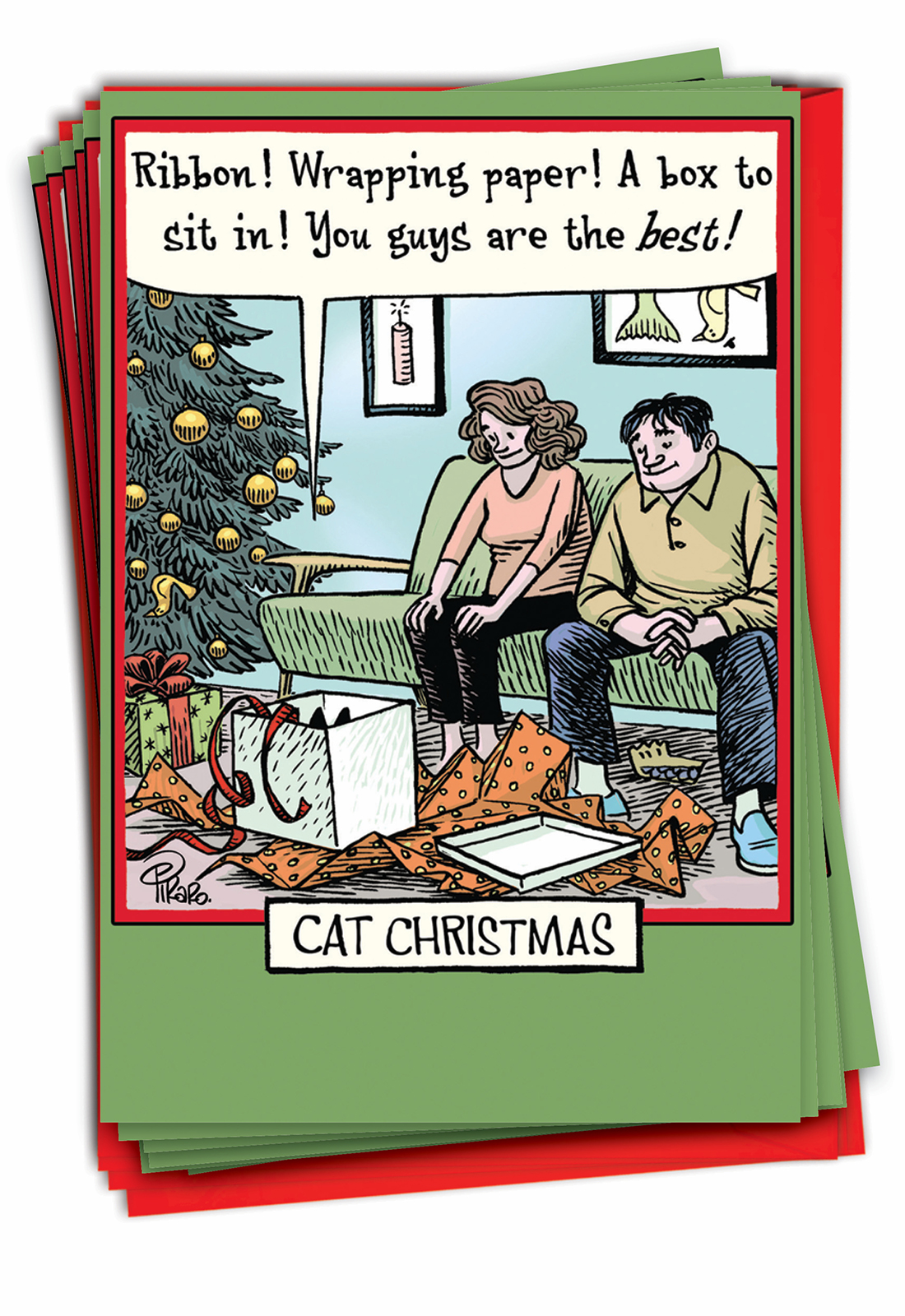 Cat Christmas - Hilarious Christmas Box of 12 Cards, Wholesale