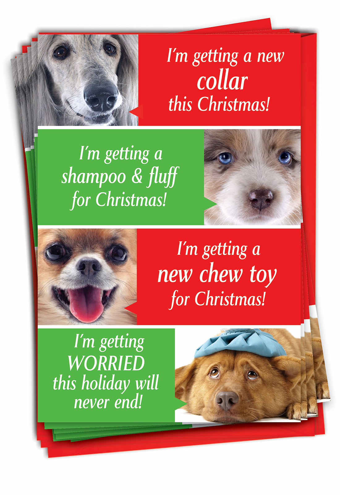 Dogs Getting Worried - Hilarious Christmas Box of 12 Cards, Wholesale