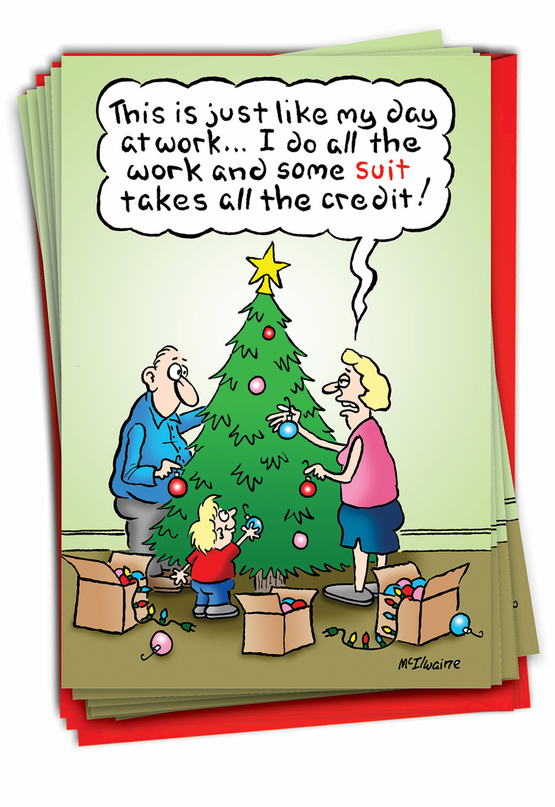Suit Takes Credit - Hilarious Christmas Box of 12 Cards, Wholesale