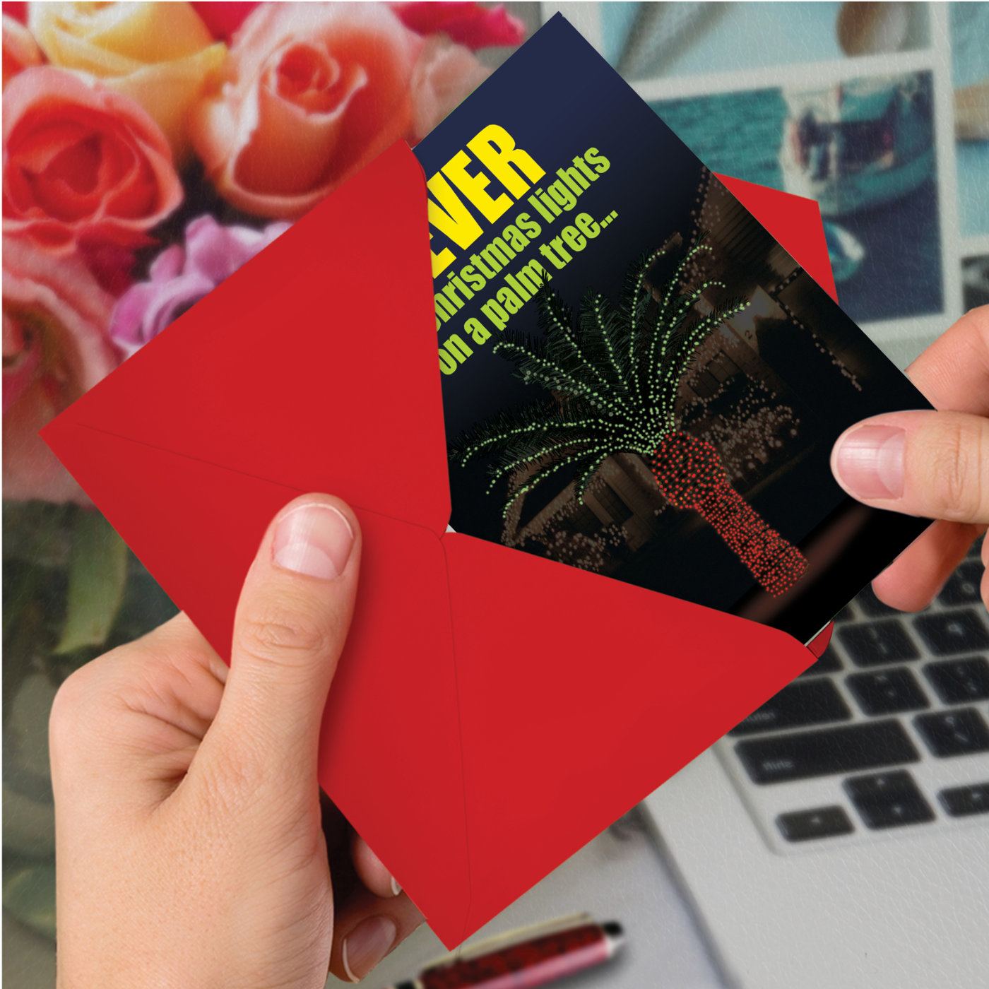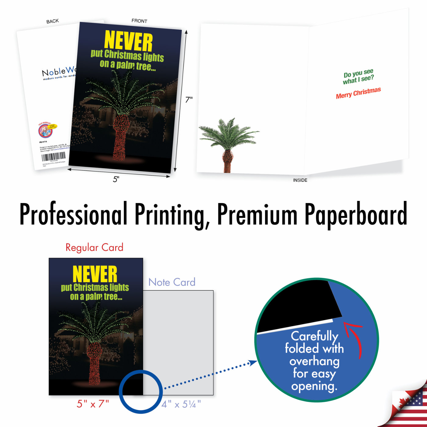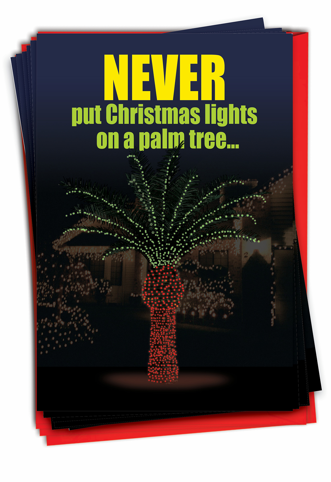 Christmas Light Palm Tree - Funny Christmas Box of 12 Cards, Wholesale