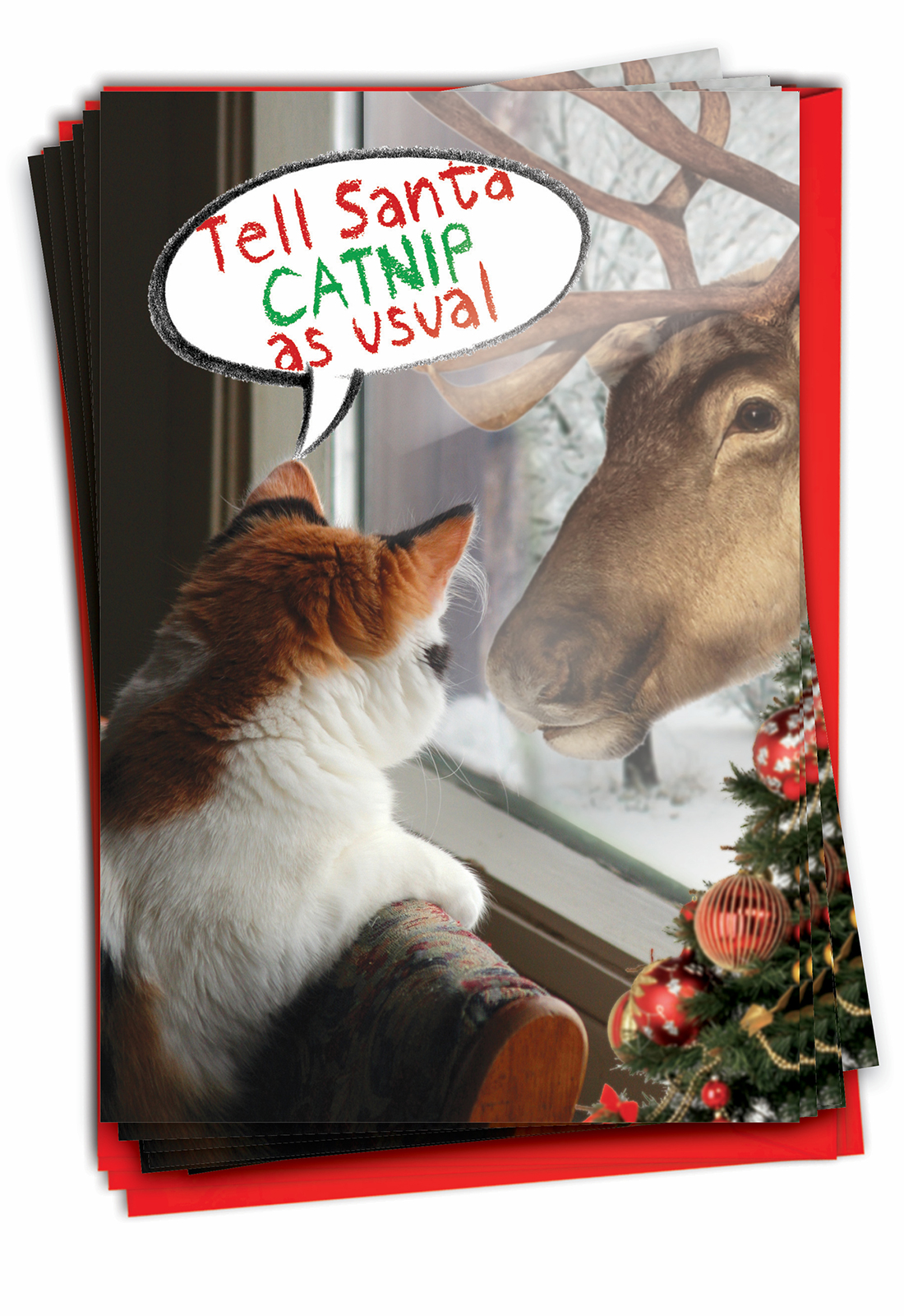 I Want Catnip - Hilarious Christmas Box of 12 Cards, Wholesale