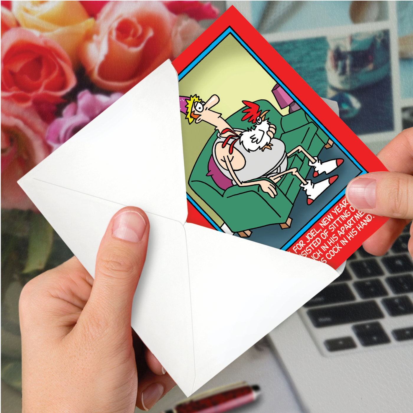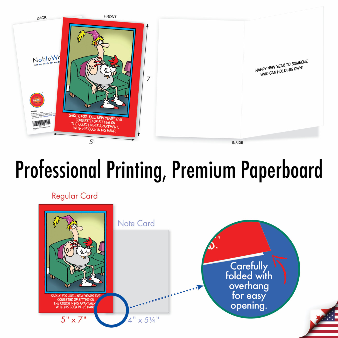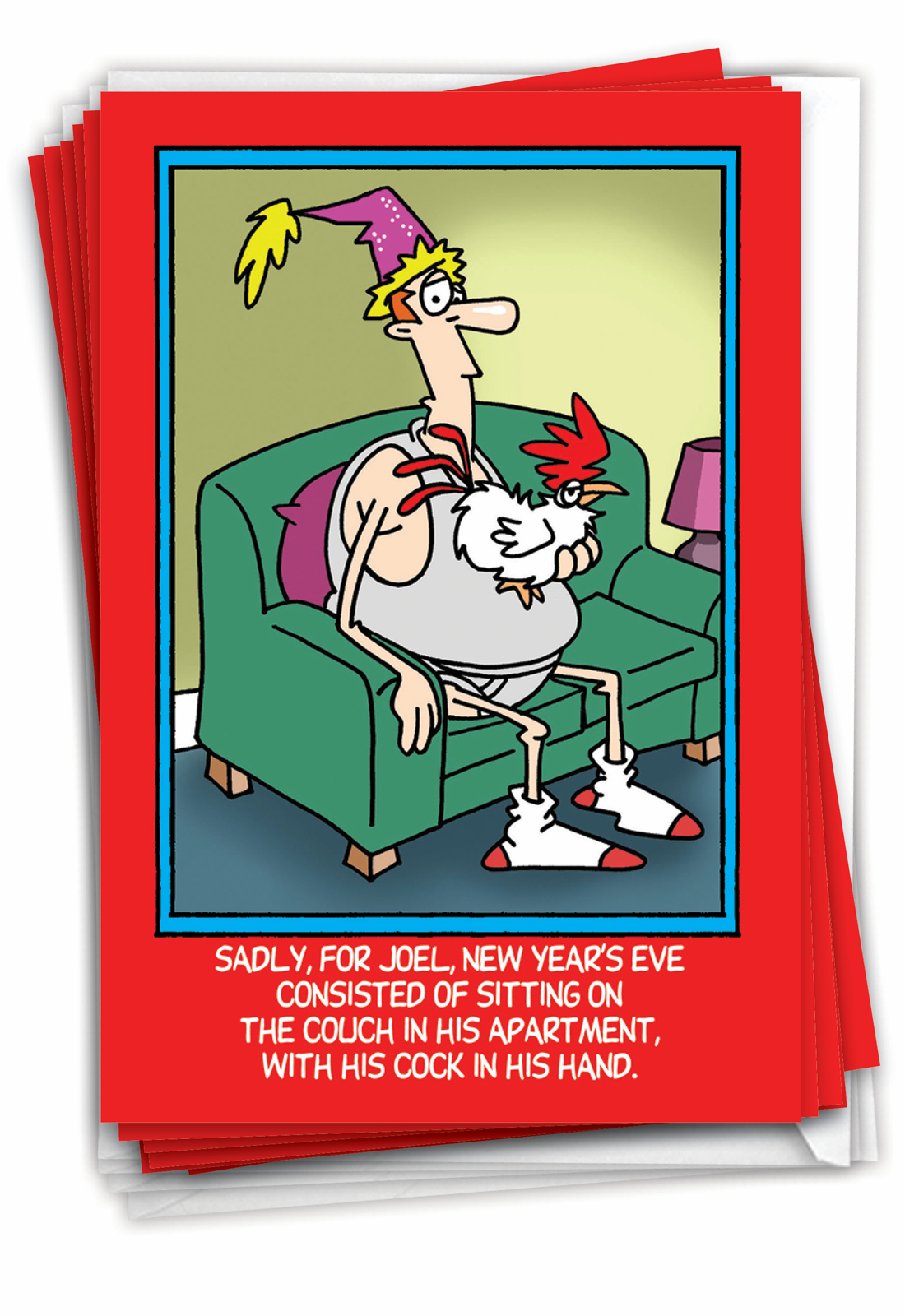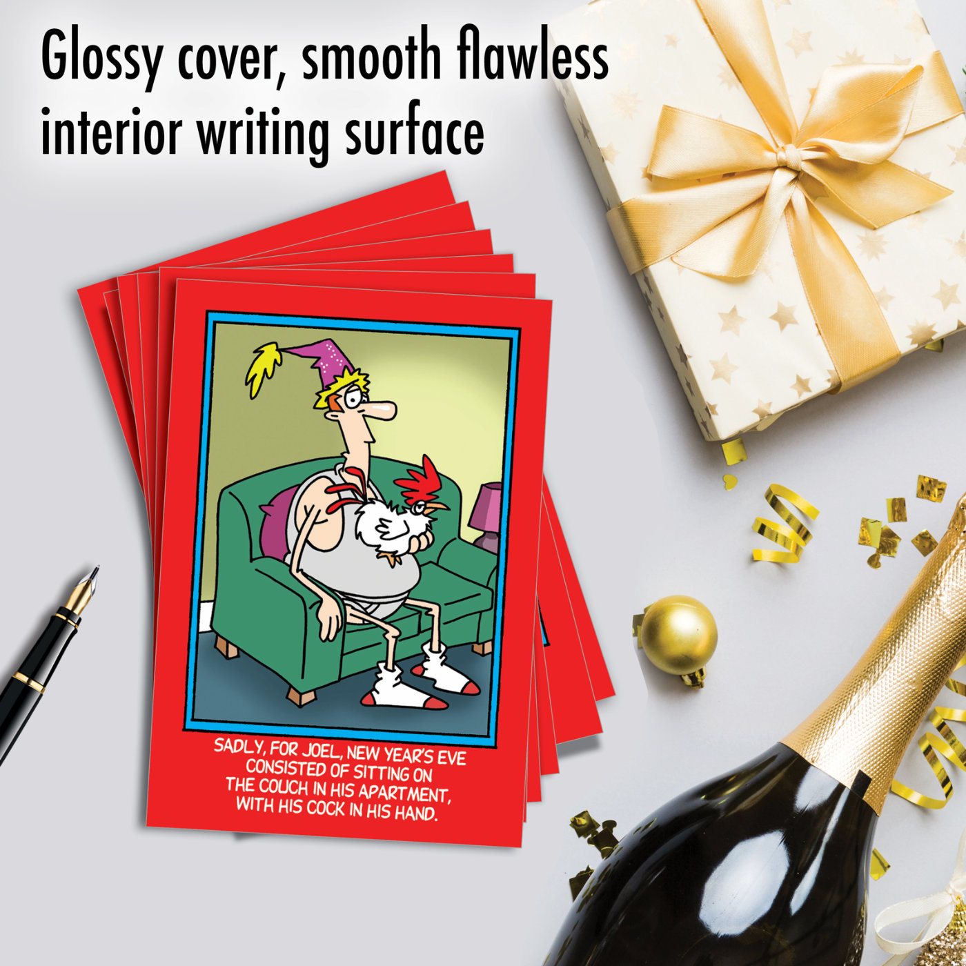 Cock in Hand - Humorous New Year Box of 12 Cards, Wholesale