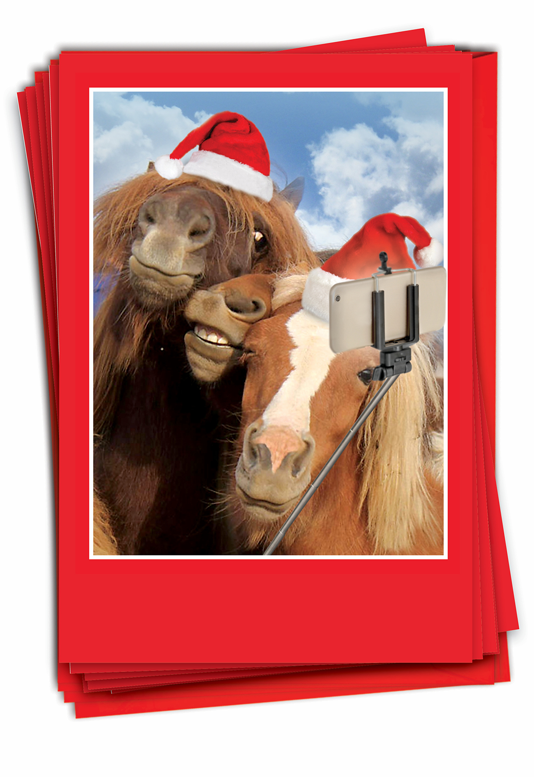 Holiday Animal Selfie - Artful Christmas Box of 12 Cards, Wholesale