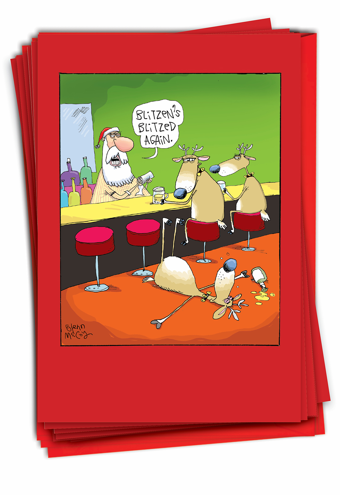 Blitzed Again - Hilarious Christmas Box of 12 Cards, Wholesale