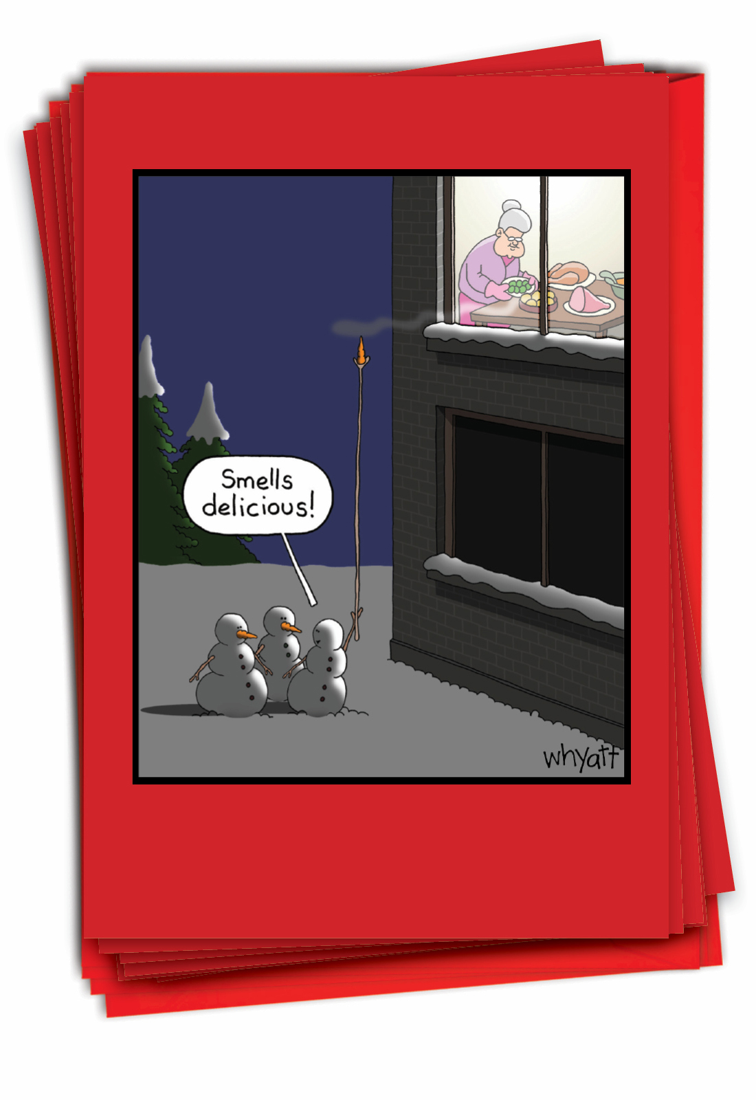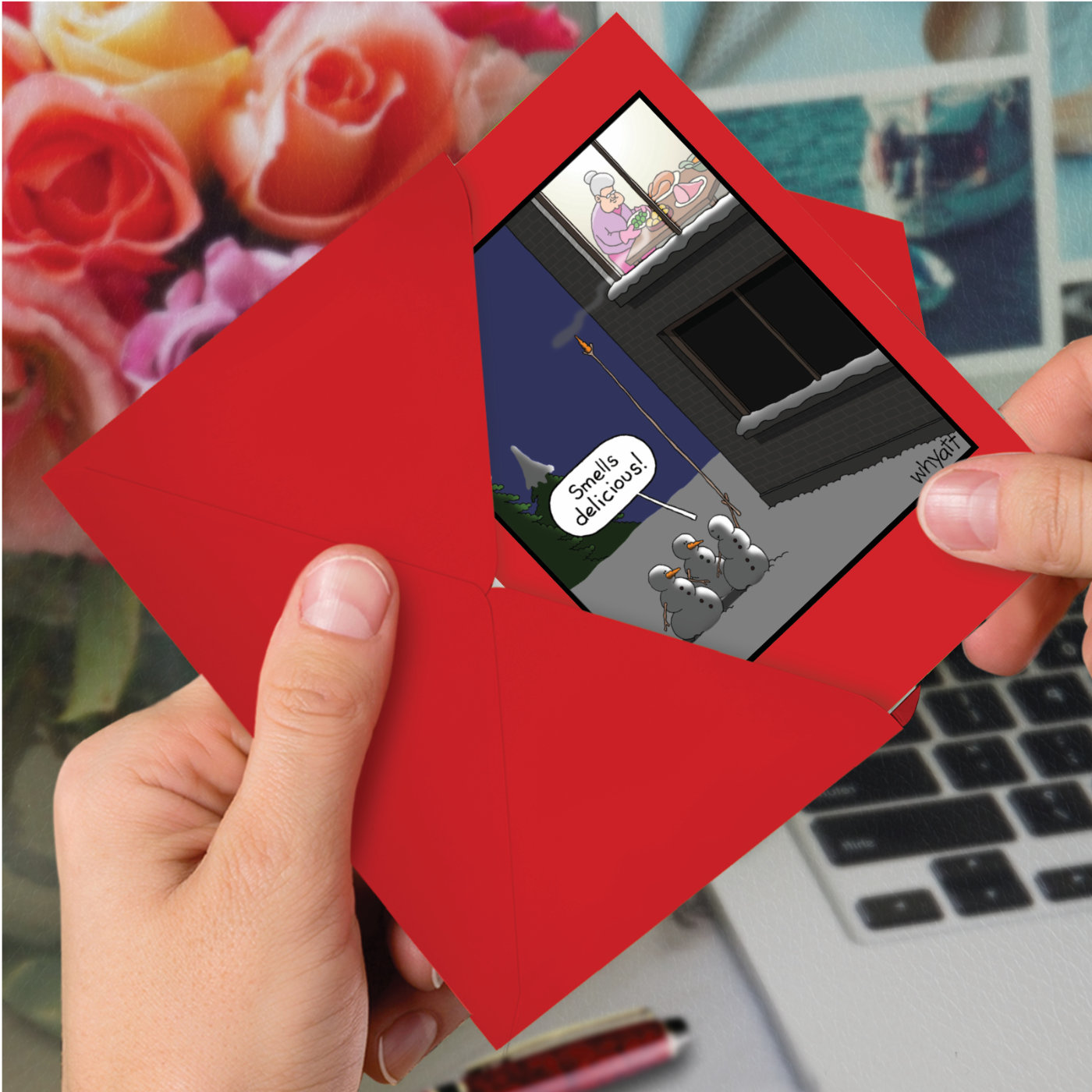 Carrot Nose Extension - Funny Christmas Box of 12 Cards, Wholesale